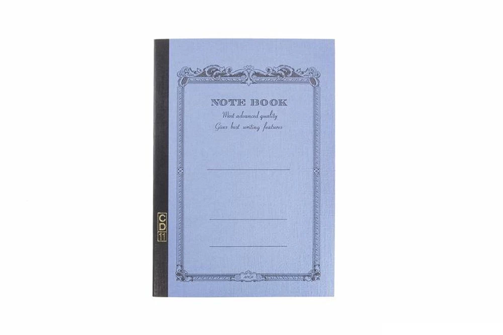 This A5-sized sky blue notebook features 28 sheets (56 pages) of white super-smooth ruled paper and reinforced stitched binding. Each sheet has 25 lines, spaced 7mm apart, with a blank margin at the top.