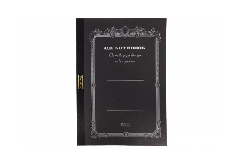 This A5-sized notebook features 96 sheets (192 pages) of white super-smooth blank paper and reinforced stitched binding. Created for Apica’s 25th anniversary, the Premium C.D. series features Apica’s ultra-smooth “A.Silky 865 Premium” paper and silver embossed accents on the black cover.