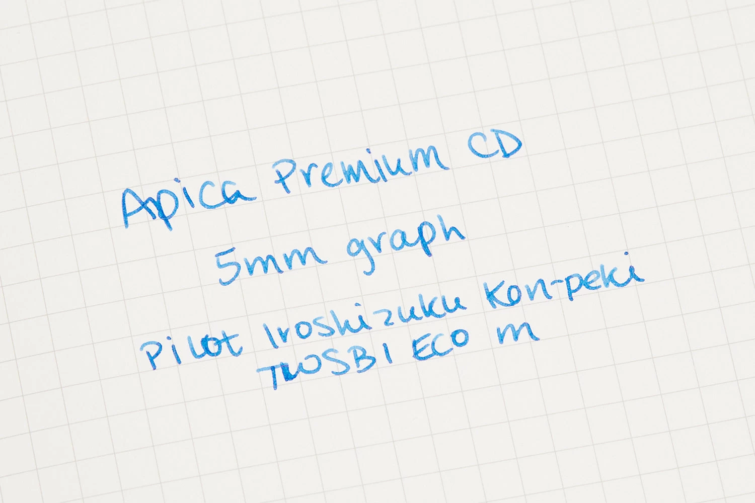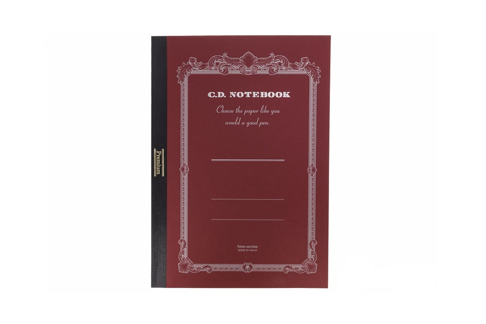 This A5-sized notebook features 96 sheets (192 pages) of white super-smooth graph paper and reinforced stitched binding. Created for Apica’s 25th anniversary, the Premium C.D. series features Apica’s ultra-smooth “A.Silky 865 Premium” paper and silver embossed accents on the dark red cover.