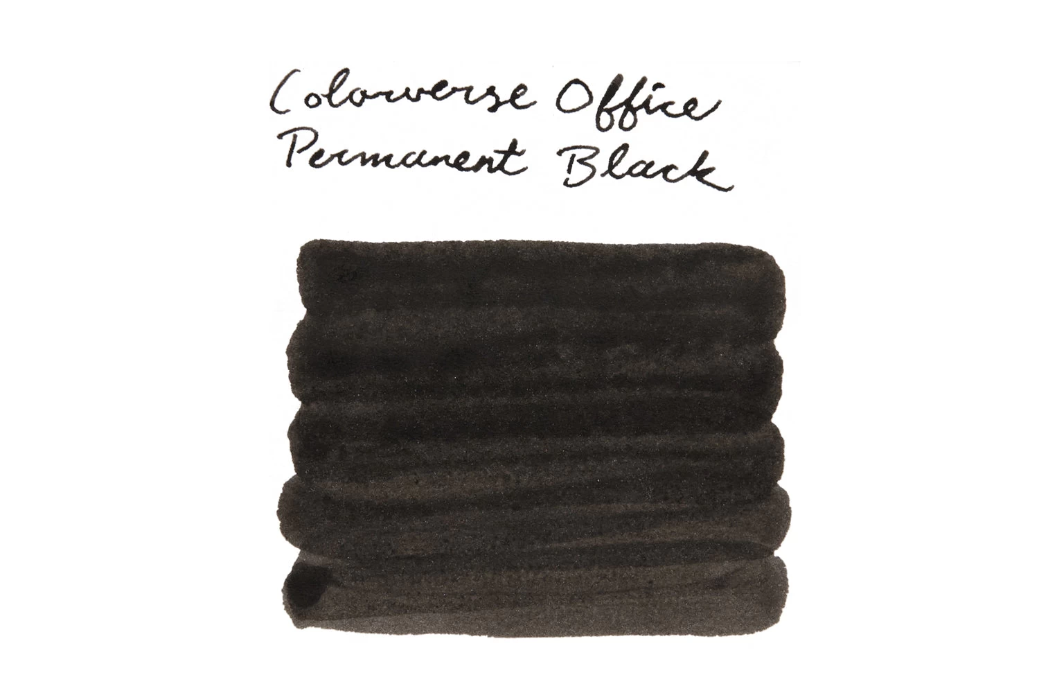 2ml black fountain pen ink sample of Colorverse Permanent Black in a labeled plastic vial. This color is part of the Office Series.