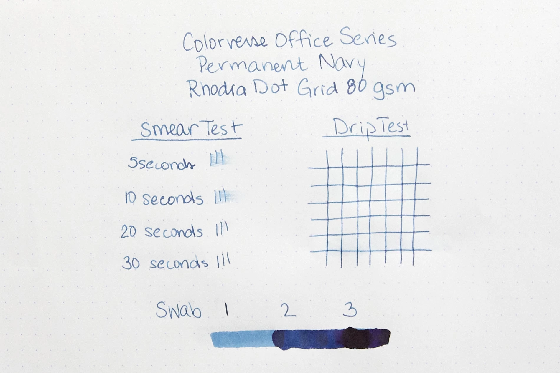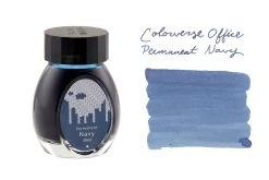 This navy blue 30ml glass bottle of Colorverse Permanent Navy fountain pen ink is designed to be used in the office or anywhere you need your ink to be permanent. This color is part of the Office Series.