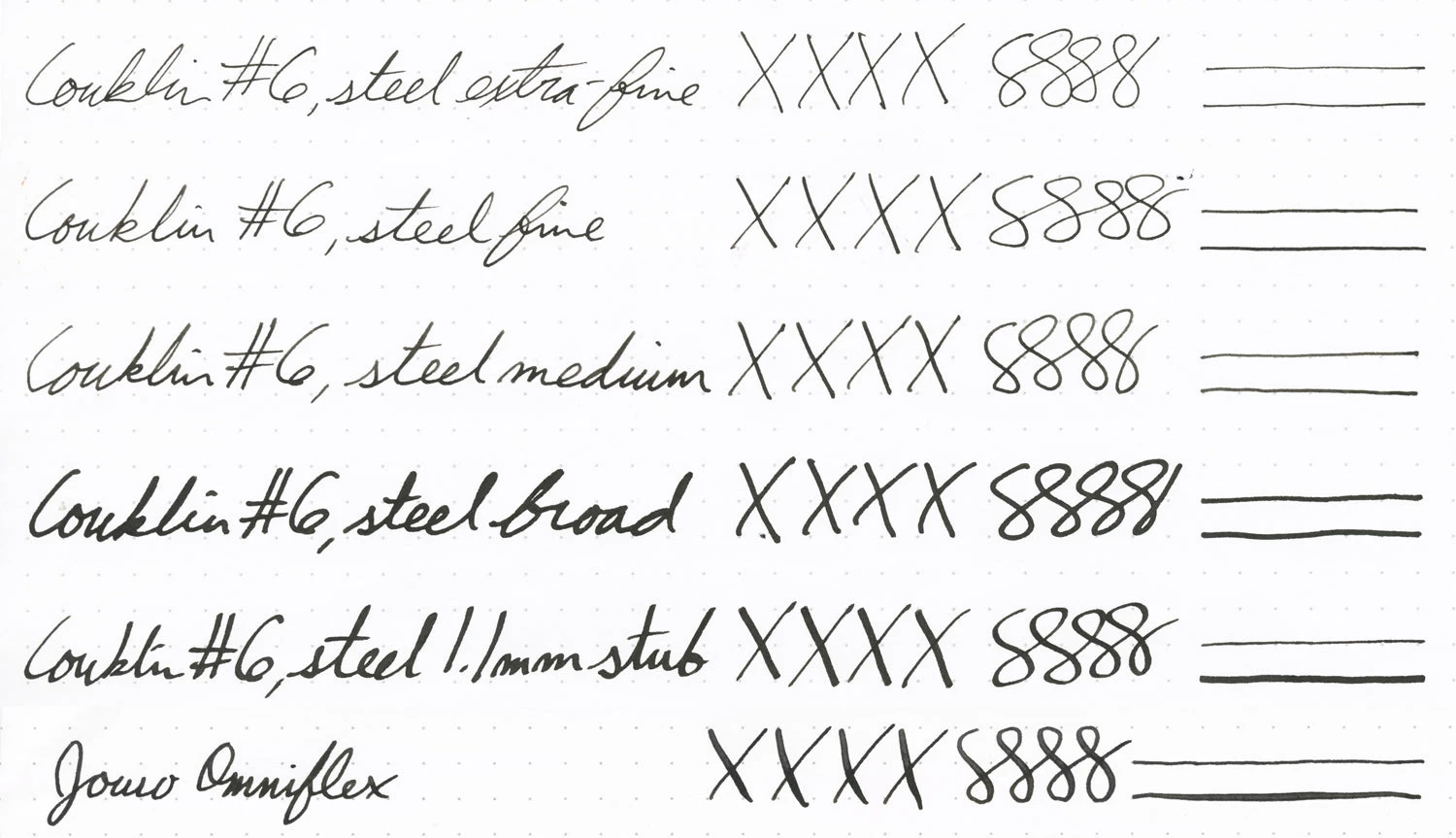 Our note about the JoWo Omniflex nib: This flex nib will allow you to experience more bounce and softness than writing with conventional nibs. You can achieve some line variation with a little additional downward pressure, to a point. We recommend flexing the nib to about twice the line width that you would see without using any pressure. Please take care to avoid pressing too hard on the nib, as over-flexing could prevent the tines from returning fully to their original position and decrease or stop your ink flow.