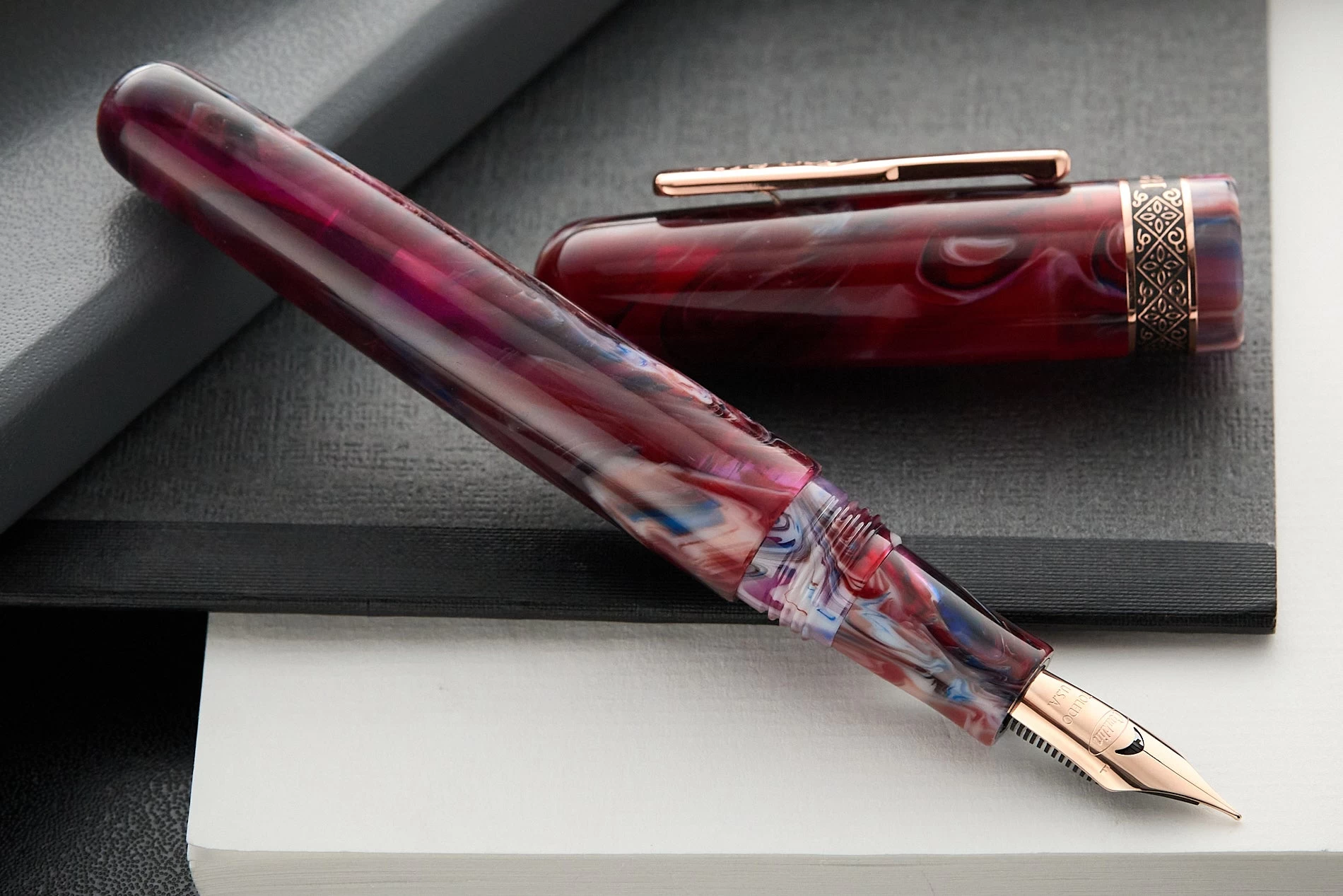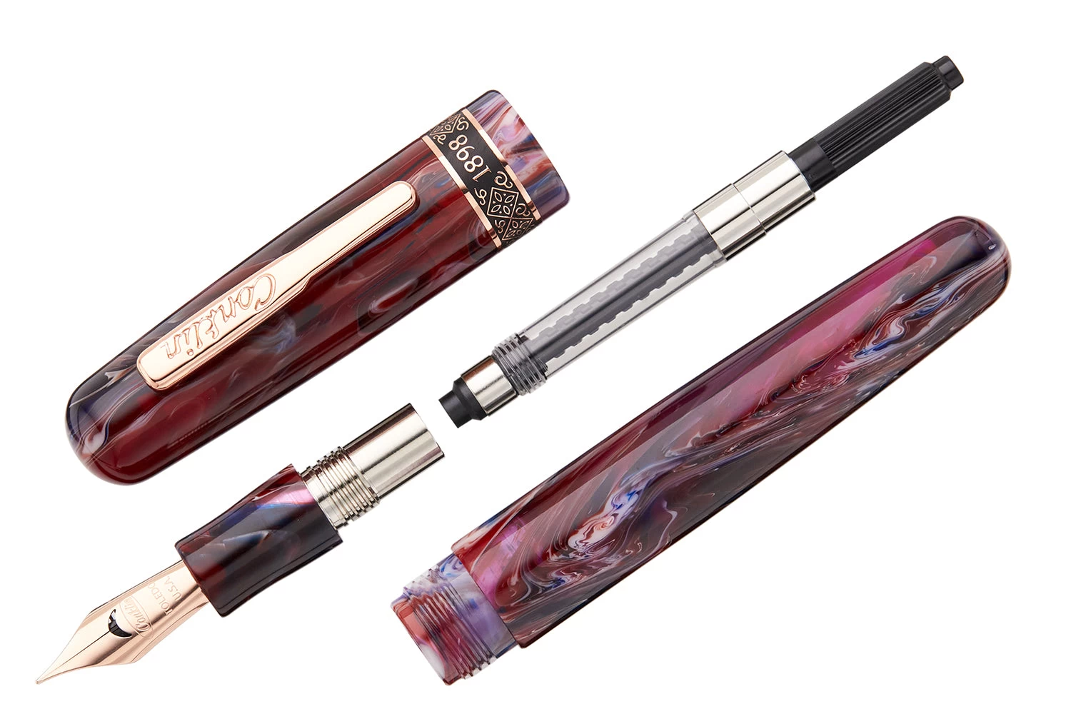 Conklin 1898 is inspired by the rich heritage of the Conklin brand, designed with comfort and durability in mind. This collection is suited to individuals looking for a well-sized, cigar shaped pen that provides a larger surface area for a comfortable grip while writing. Offered in three beautiful misto colors: Green, Purple, and Orange, with unique color blends where no two pens are alike. This Misto Purple color is accented with a rose gold trim, to further highlight the unique color blends of each pen.