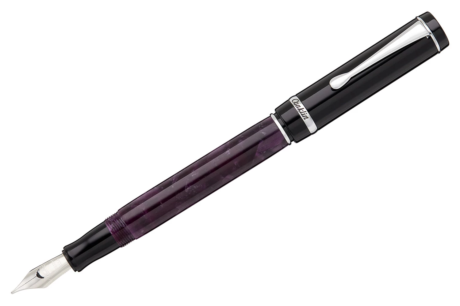 The Duragraph draws its inspiration from the rich heritage of the Conklin brand, which was purchased and revived by Yafa in 2009. It is manufactured in Asia, assembled and distributed from Canoga Park, California, and pays tribute to its roots with a “Toledo, Ohio” engraving on its nib and barrel. The cap top is embellished with the Conklin Est. 1898 logo and the cap band are engraved with the famous Duragraph model script font with three Conklin Crescent logos on either side of the model name. The fountain pen comes with a converter and a cartridge.