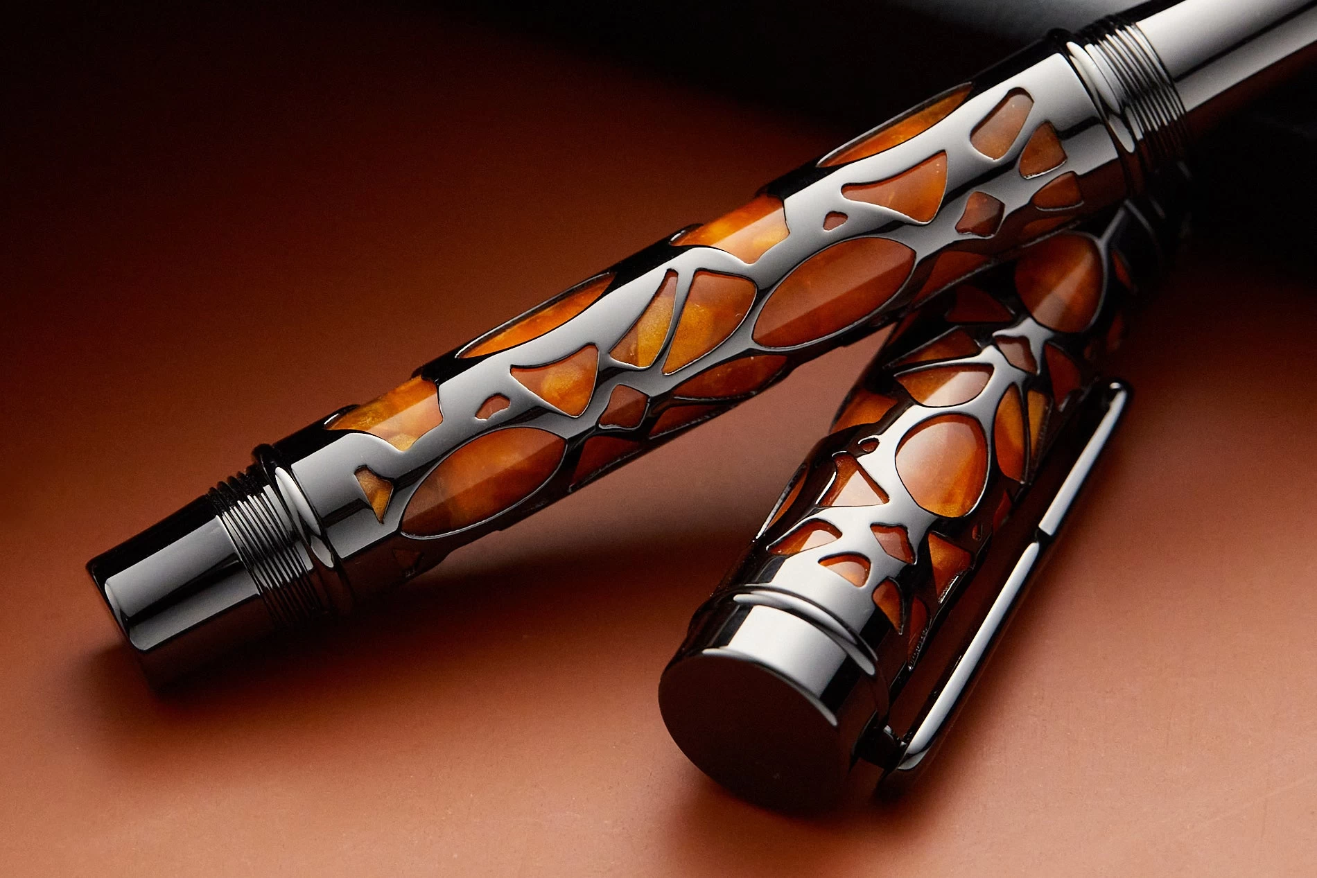 The collection is available in three gorgeous colors, each with a different finish. Crafted from hand-made European high-grade, hand-turned and hand-polished resin and accented with metal overlay, the barrel brilliantly reflects light off of its surface, enhancing the stunning colors. Lustrous plating adorns the clip, band, trim and overlay, enhancing the elegance of each Endura pen.