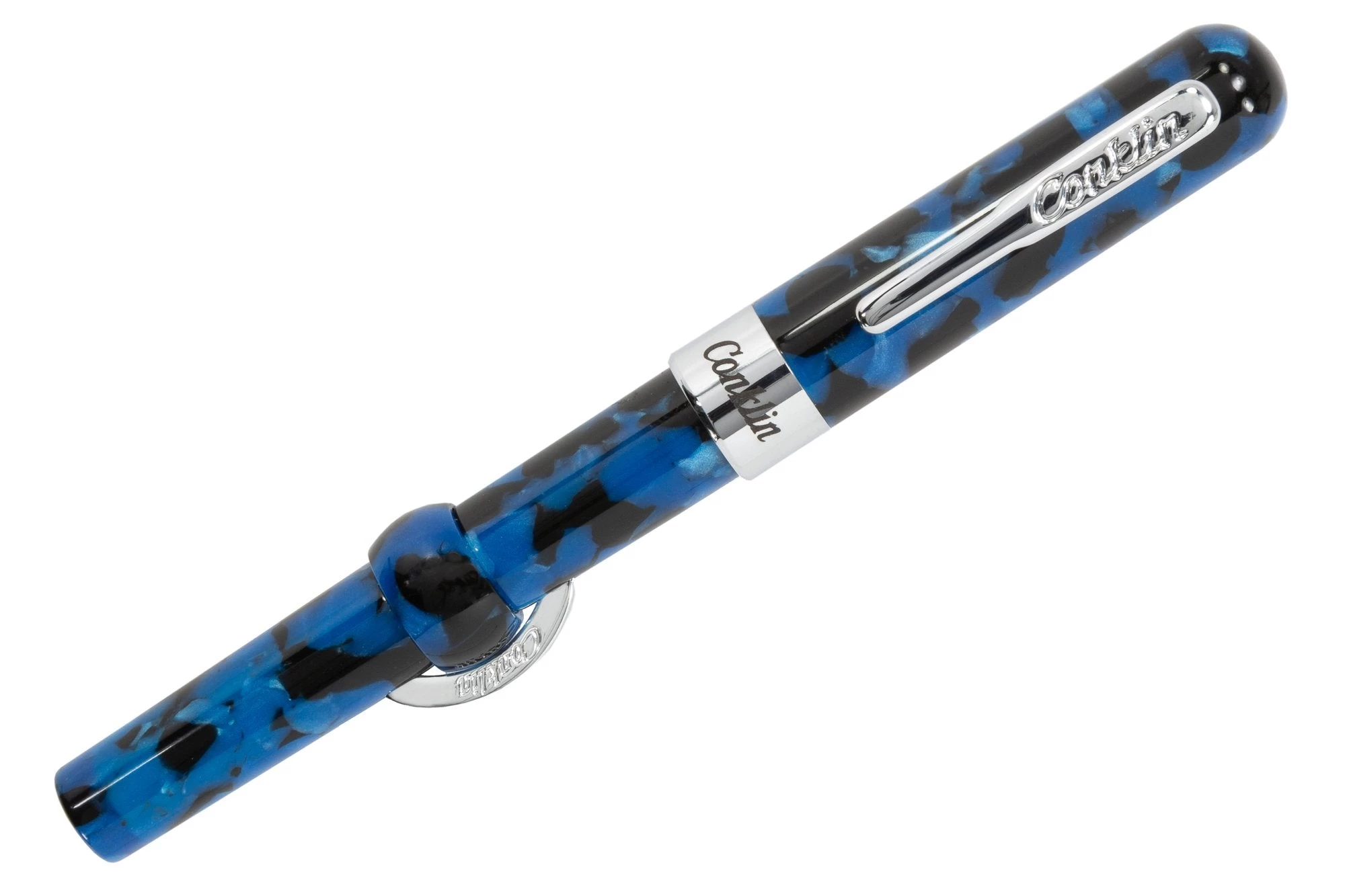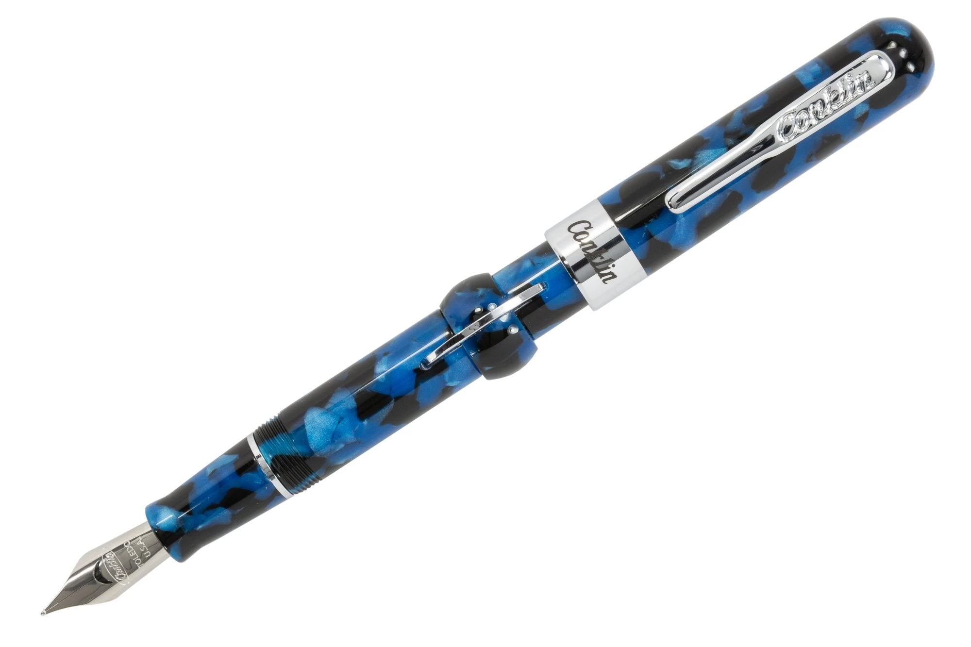 Each Crescent Filler utilizes Conklin’s groundbreaking original design, one that still works as effortlessly as it did a century ago. Crafted from bars of solid, vibrant blue resin dapped with black flecks within and paired with polished silver accents, Vintage Blue is a beauty to behold and is tastefully engraved with Mark Twain’s signature along the band. Each pen still maintains the original Conklin® spring loaded rocker clip that was patented in 1916, the perfect addition to any pocket, jacket, or coat.