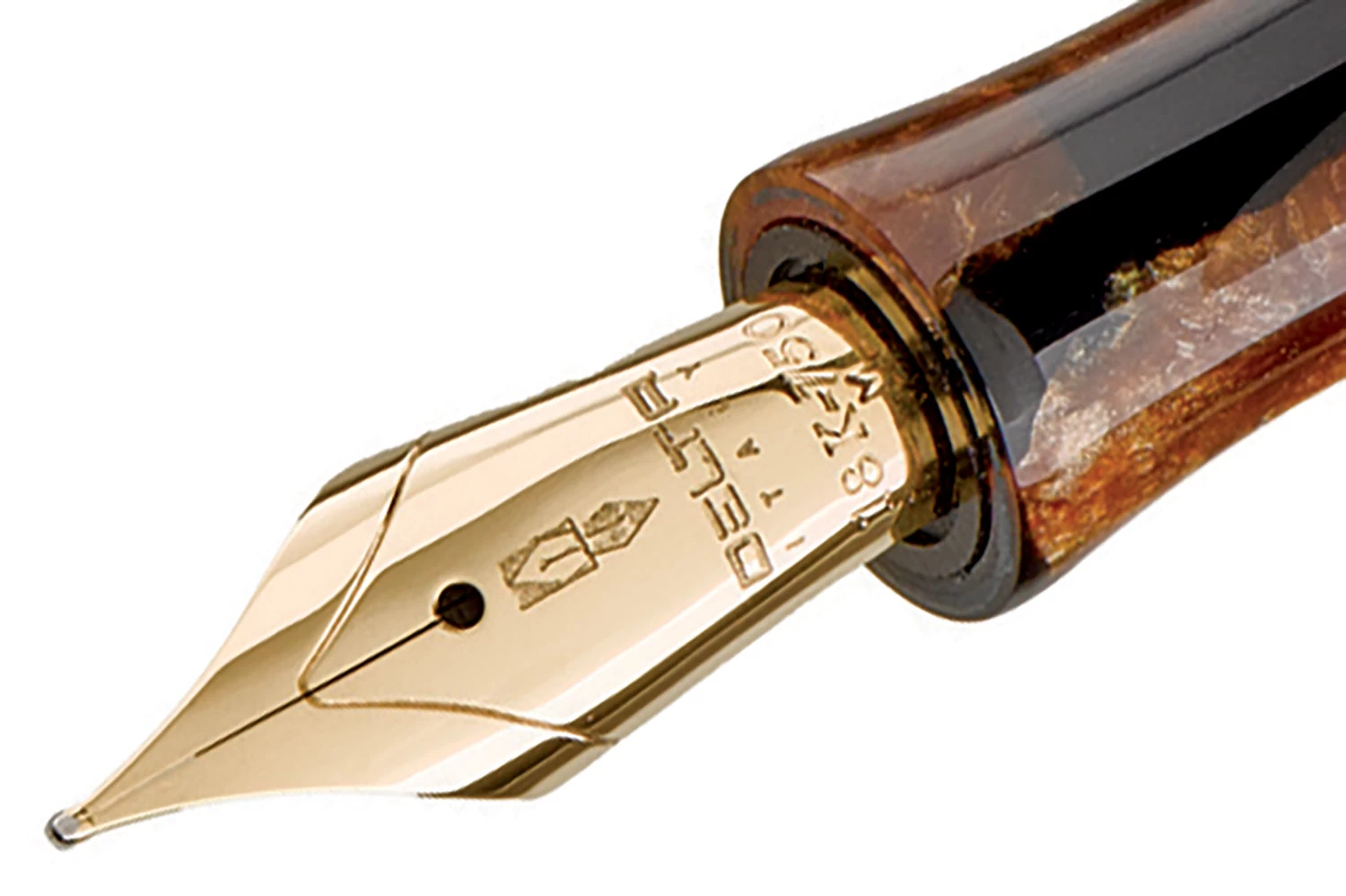 A variety of nibs are available for this pen, including 18k gold nibs and 14k flexible gold nibs all made by JoWo, each engraved with the Delta signature logo.
