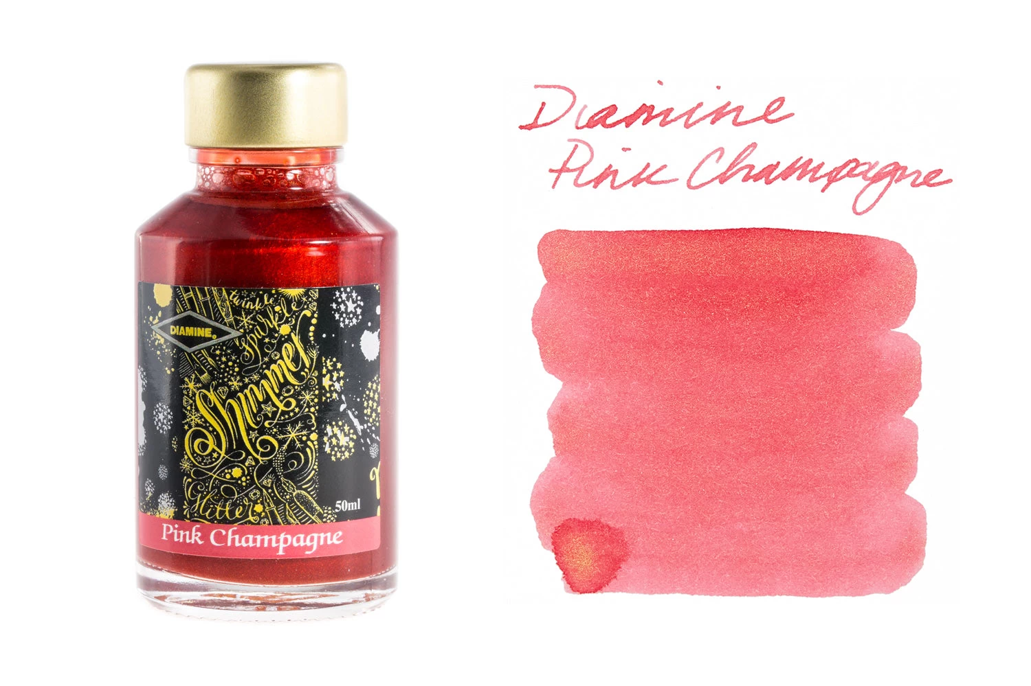 Part of Diamine’s Shimmertastic collection, this Pink Champagne fountain pen ink features added gold shimmer. Works best with broader nibs on high quality paper to really see the shine. Comes in a 50ml glass bottle.