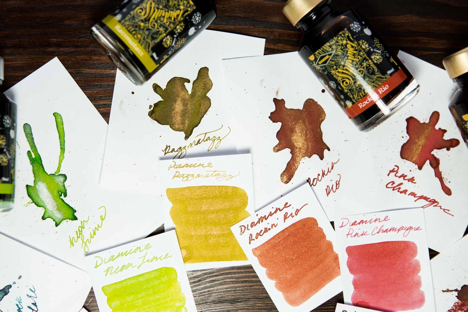 Due to the amount of particulate in this ink used to achieve the sparking look, you may experience restricted ink flow in some of your pens. We recommend shaking the ink thoroughly before filling and gently rolling the pen in your hands often to keep the shimmer effect consistent. This will also help prevent clogging. You will also want to be diligent about cleaning and maintaining your pen when using this ink.