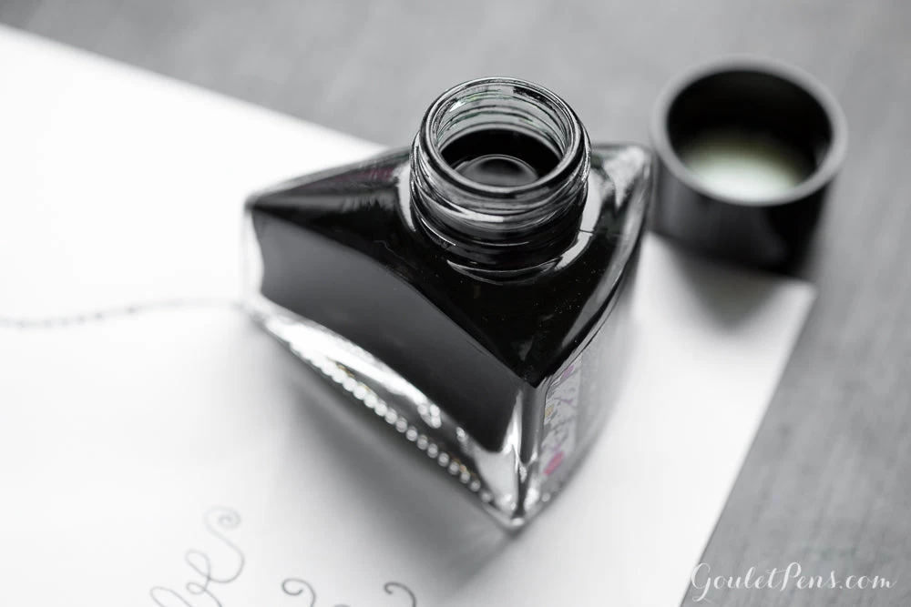 Diamine Silver Fox is part of the Diamine Anniversary Collection, created to to celebrate 150 years of the brand. These triangular design glass bottles contain 40ml of fountain pen ink. Together these bottles when collected can be arranged into a beautiful round desk display.