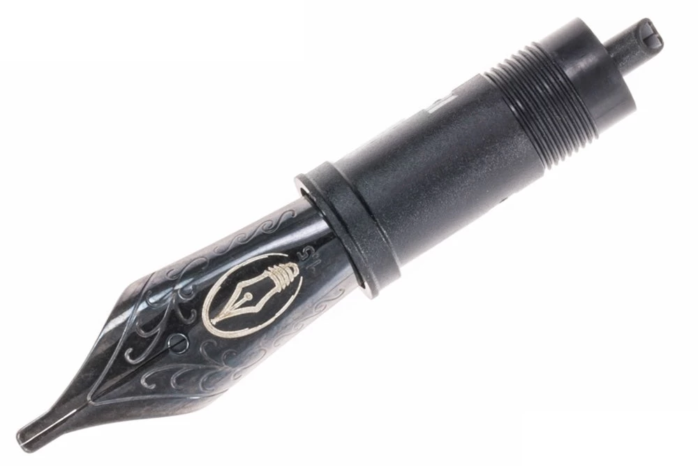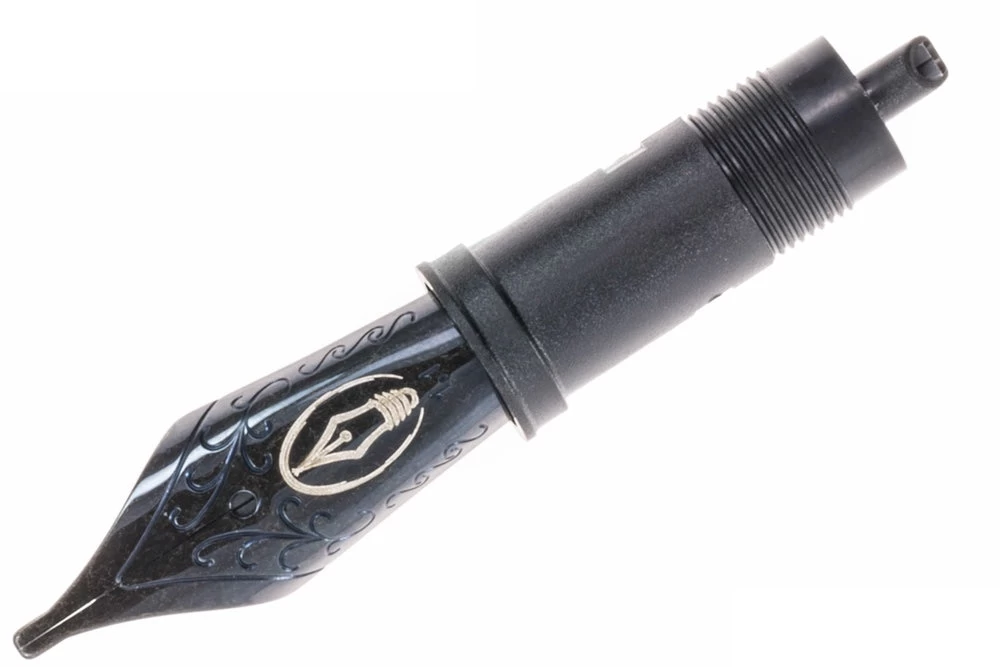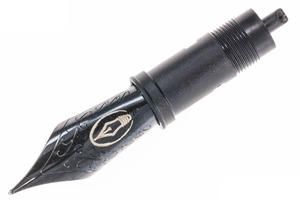 This #6 black steel nib fits all larger models of Edison pens (including the Premiere, Beaumont, Collier, and many others), as well as many other fountain pens that accept a #6 JoWo nib unit. The feed and housing are also included as part of this nib unit.