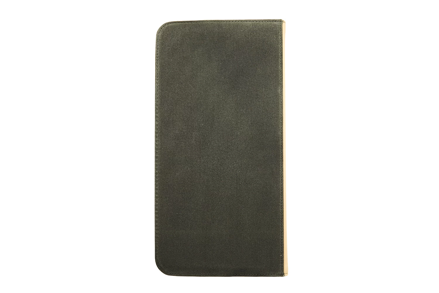 This army green canvas case holds up to 40 pens, each held snug in its own slot.