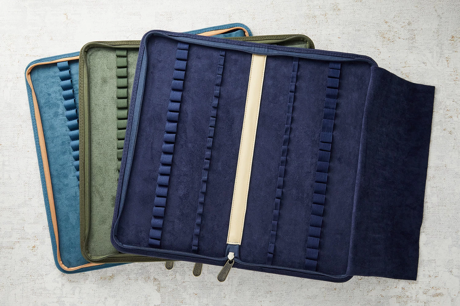 Introducing the Esterbrook pen case collection, a must-have for dedicated collectors who are always on the move. Crafted with meticulous attention to detail, these canvas cases come in two sizes, accommodating 20 or 40 pens.