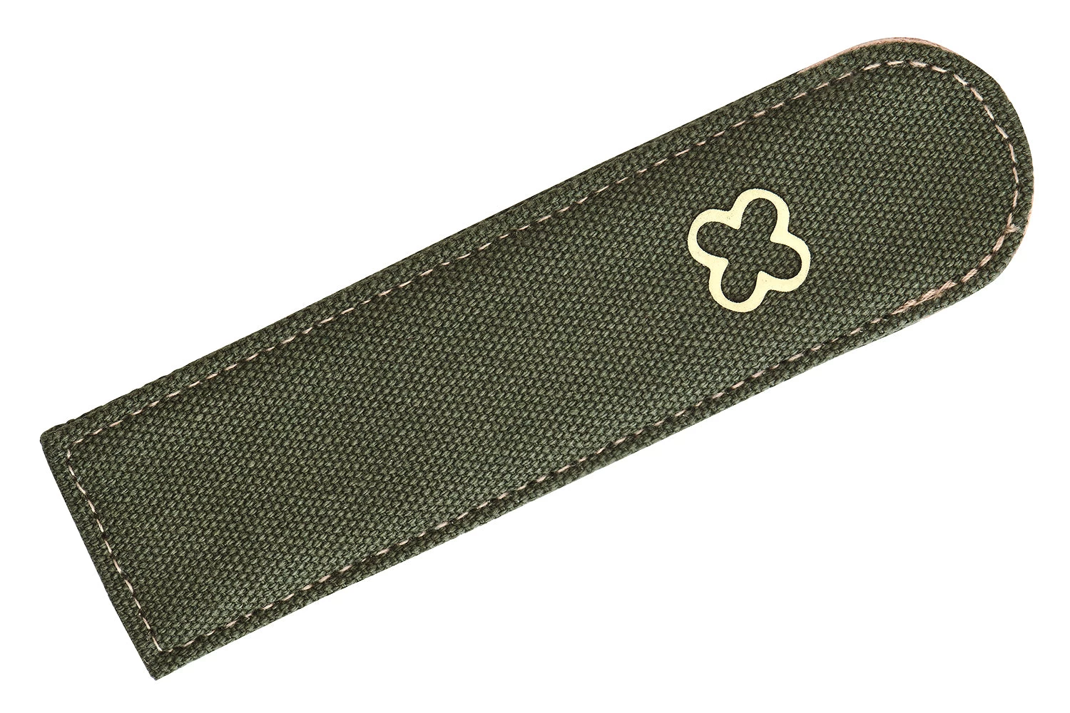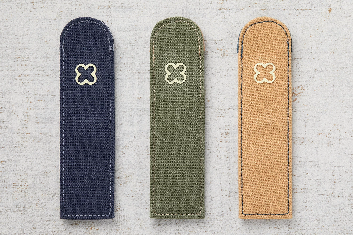 This army green canvas pen case holds 1 pen snug in its own fabric-covered slot. The sleeve is perfect for those on-the-go who need a quick and easy way to keep your most precious cargo safe, secure, and stylish.