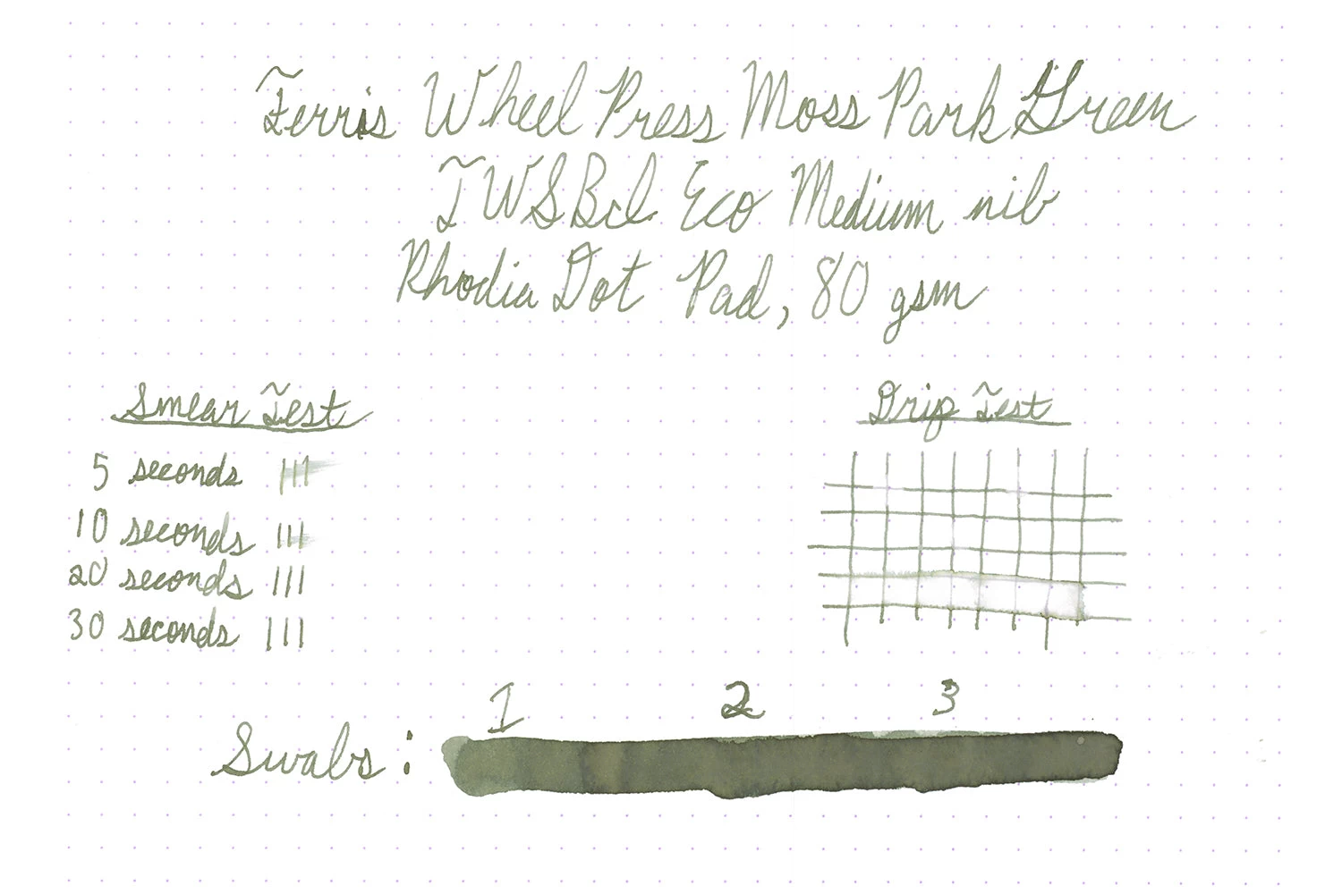 2ml sample of Ferris Wheel Press Moss Park Green fountain pen ink, a muted grey-green color. Moss Park Green is part of the Autumn in Ontario collection.