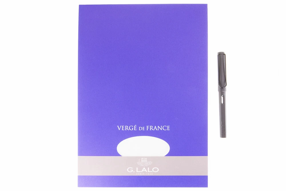 This A4-sized stationery tablet of G. Lalo Vergé de France contains 50 removable sheets of blank 100g laid white paper.