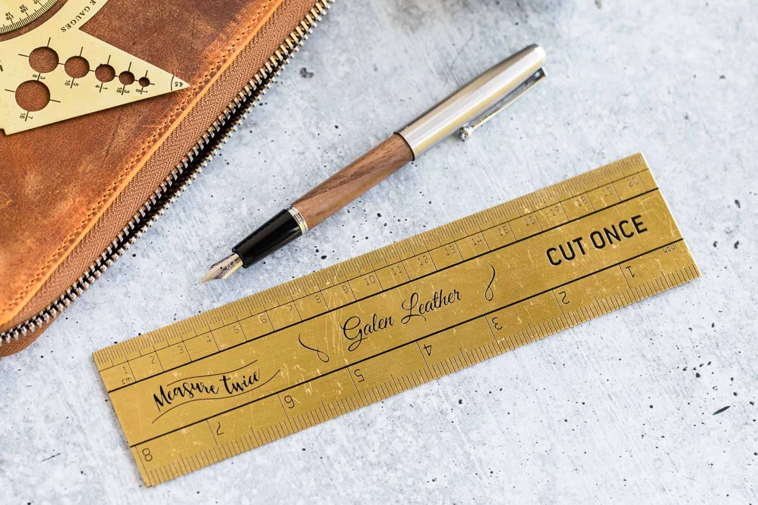 This solid brass ruler is the perfect accessory for your desk or to carry with your journal. Made of 100% solid brass and etched for durability with both imperial and metric scales. It makes the perfect reference for all applications.