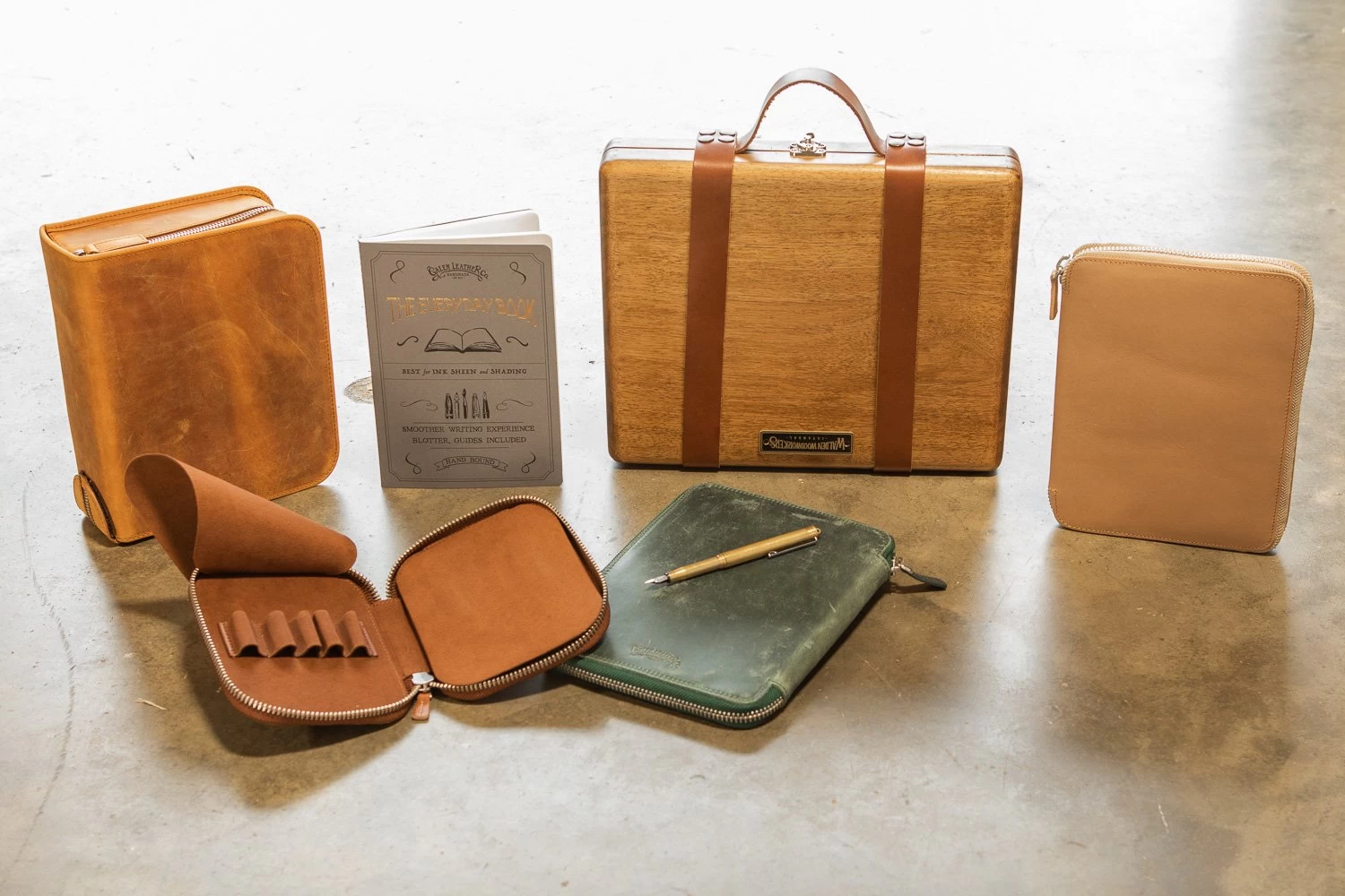 This folio measures 7.3 x 9.2 inches (18.5 x 23.5 cm). It is made of 100% vegetable tanned cow leather with a velvet lined interior and a YKK zipper.