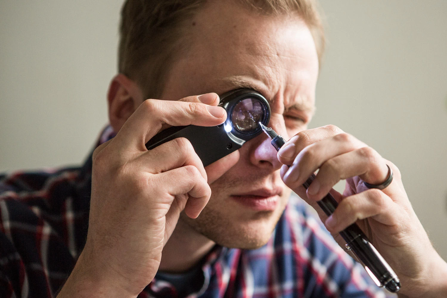 Everything you need to tune/smooth your fountain pens! Includes a Carton 10x LED loupe, brass sheets, Goulet Grip, mylar paper set, and Micro-Mesh.