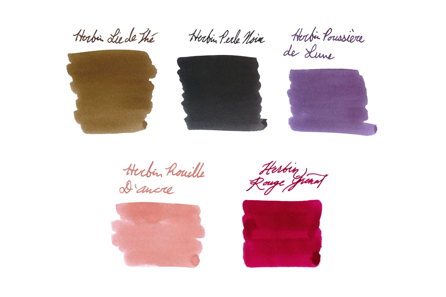 Our selection of five of our top selling Herbin fountain pen ink samples. Each 2ml sample comes in a labeled plastic vial.