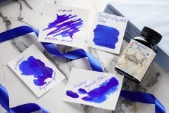 This set of 5 samples includes Jacques Herbin 1670 Bleu Ocean, Emerald of Chivor, Rouge Hematite, Stormy Grey, and Violet Imperiale.