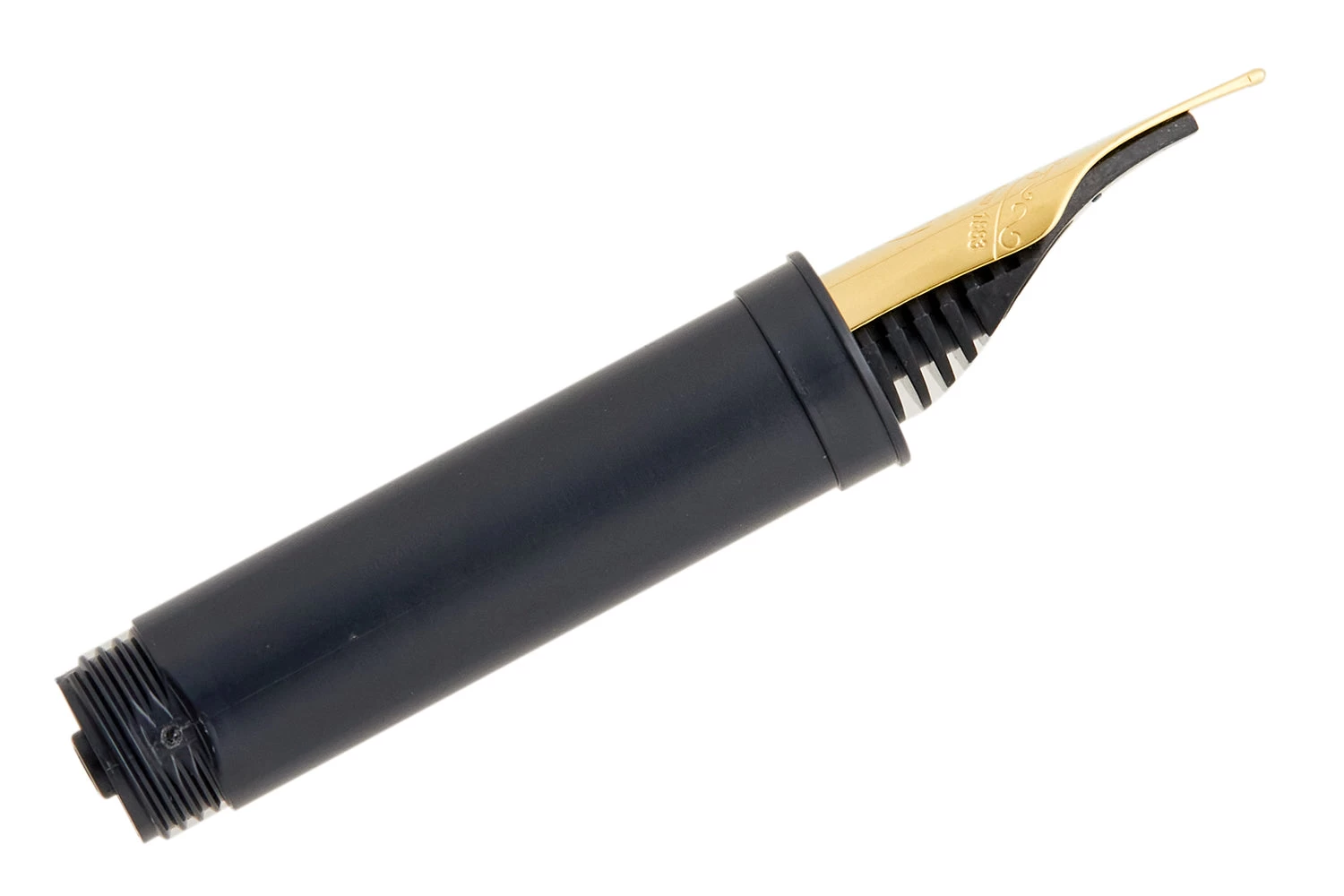 Gold-plated #2 steel nib unit to fit most Kaweco fountain pens, including the AL Sport, Brass Sport, Classic Sport, Frosted Sport, ICE Sport, Liliput, and Skyline Sport. This nib unit includes the feed and housing as well. This replacement nib unit will thread into the AL-Sport and Liliput models. To install on other models it may be necessary to remove the friction fit nib from the threaded housing, as other models may have the housing permanently affixed to the grip section.