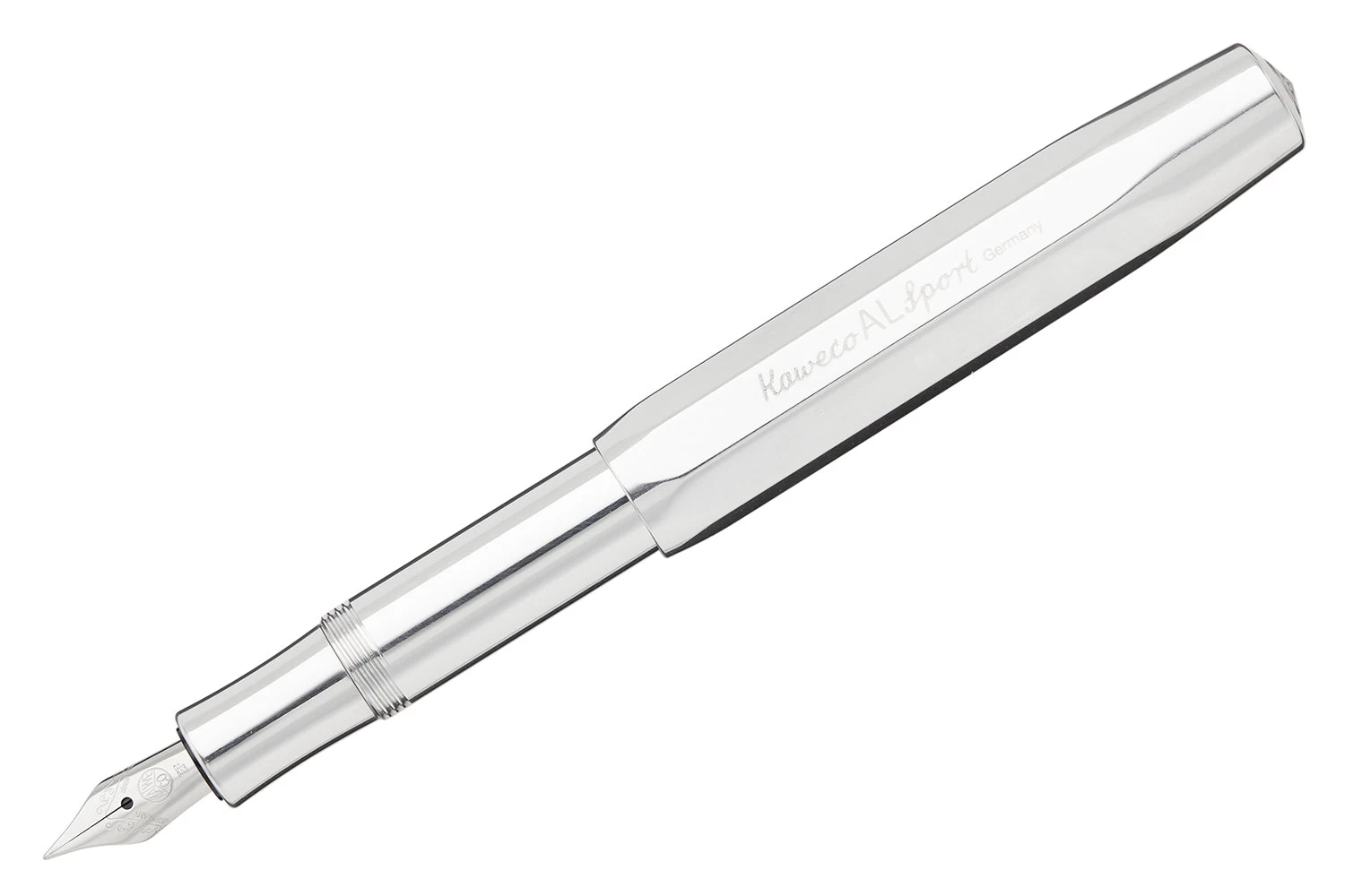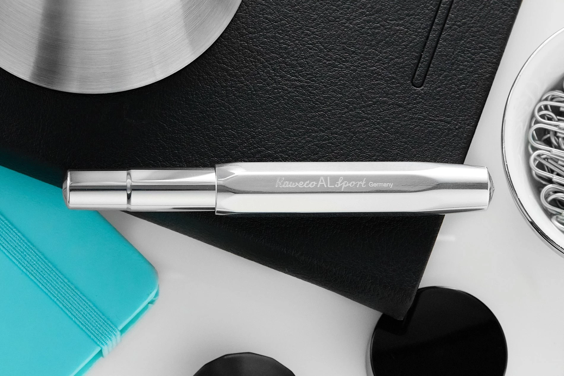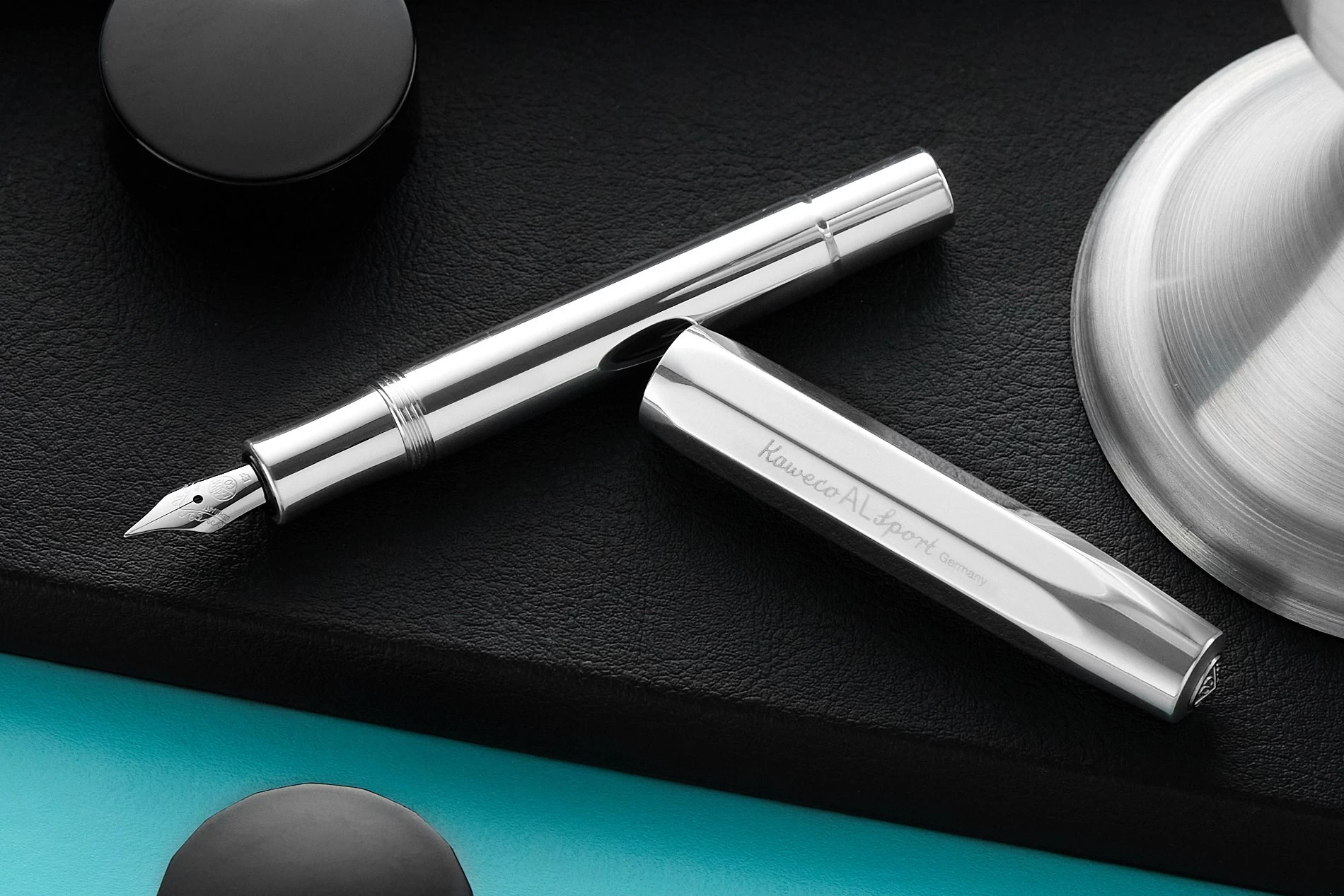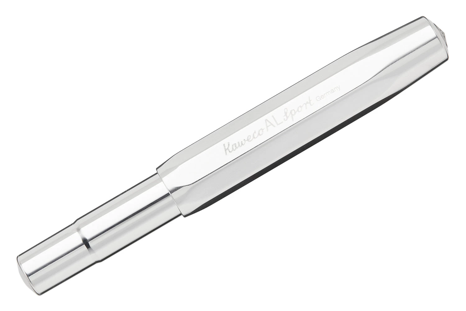 The Kaweco AL Sport is a pocket-sized fountain pen that when posted transforms into a full-sized pen that easily fits in your hand. The raw aluminum will pick up its own unique patina and pattern of scuffs and scratches over time as you use and transport the pen, making this version of the AL Sport truly unique to you. It comes with a stainless steel nib and an ink cartridge to get you started writing right away! It accepts short standard international cartridges. Kaweco converter and optional clip sold separately.
