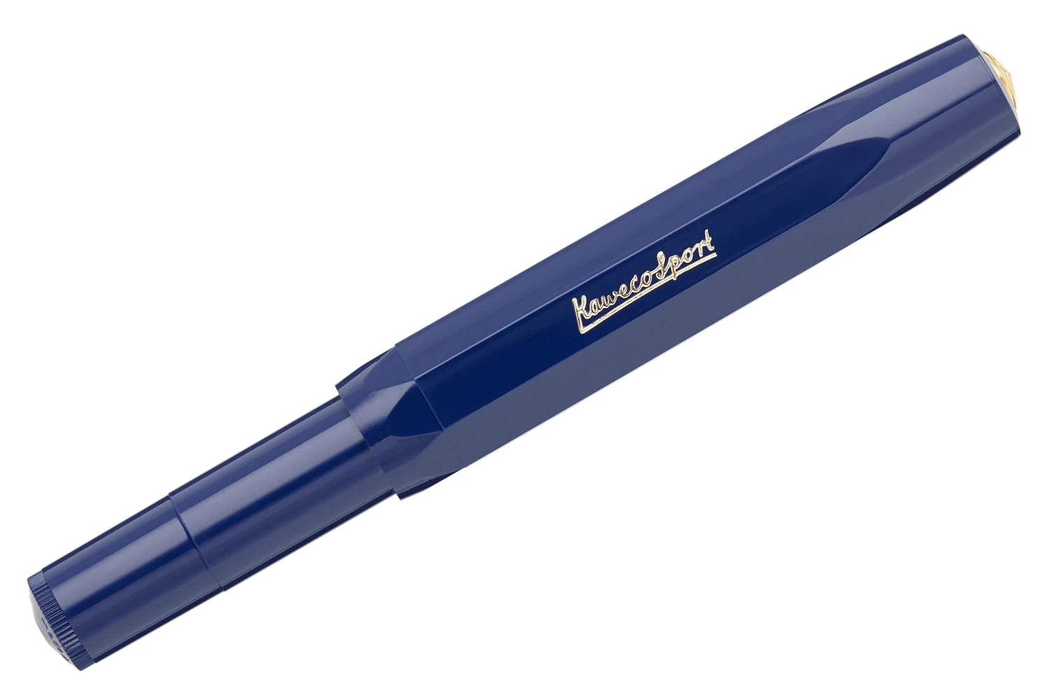 The Kaweco Classic Sport is a pocket-sized fountain pen that when posted transforms into a full-sized pen that easily fits in your hand. This solid navy blue resin fountain pen comes with a gold-plated steel nib and an ink cartridge to get you started writing right away! It uses short standard international ink cartridges, or you can easily convert it to an eyedropper pen with a little bit of silicone grease. Converter and optional clip sold separately.