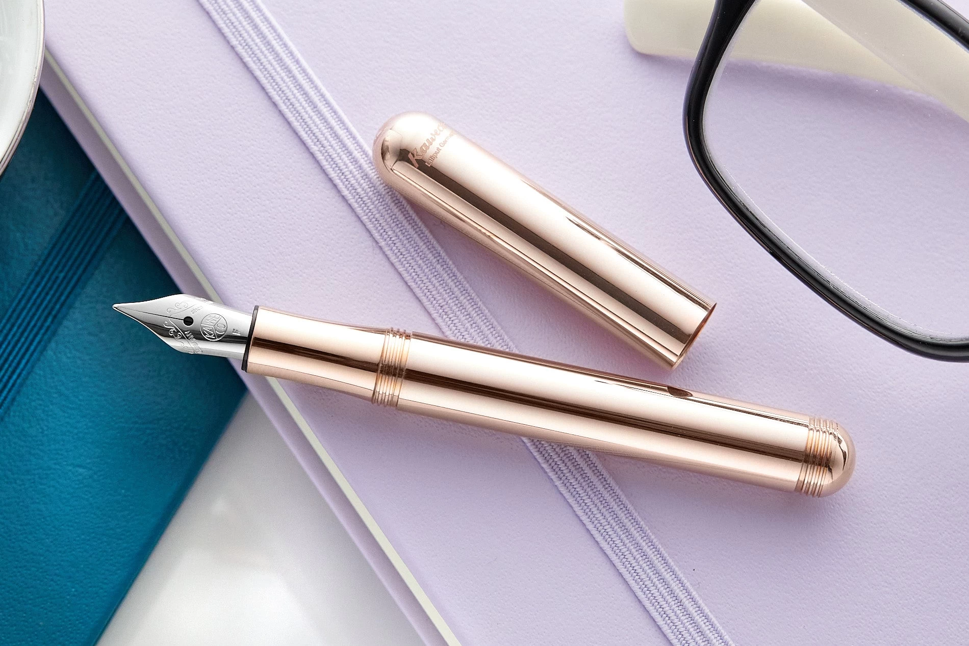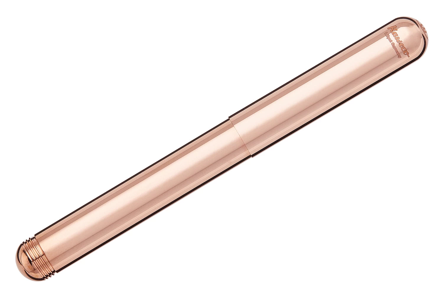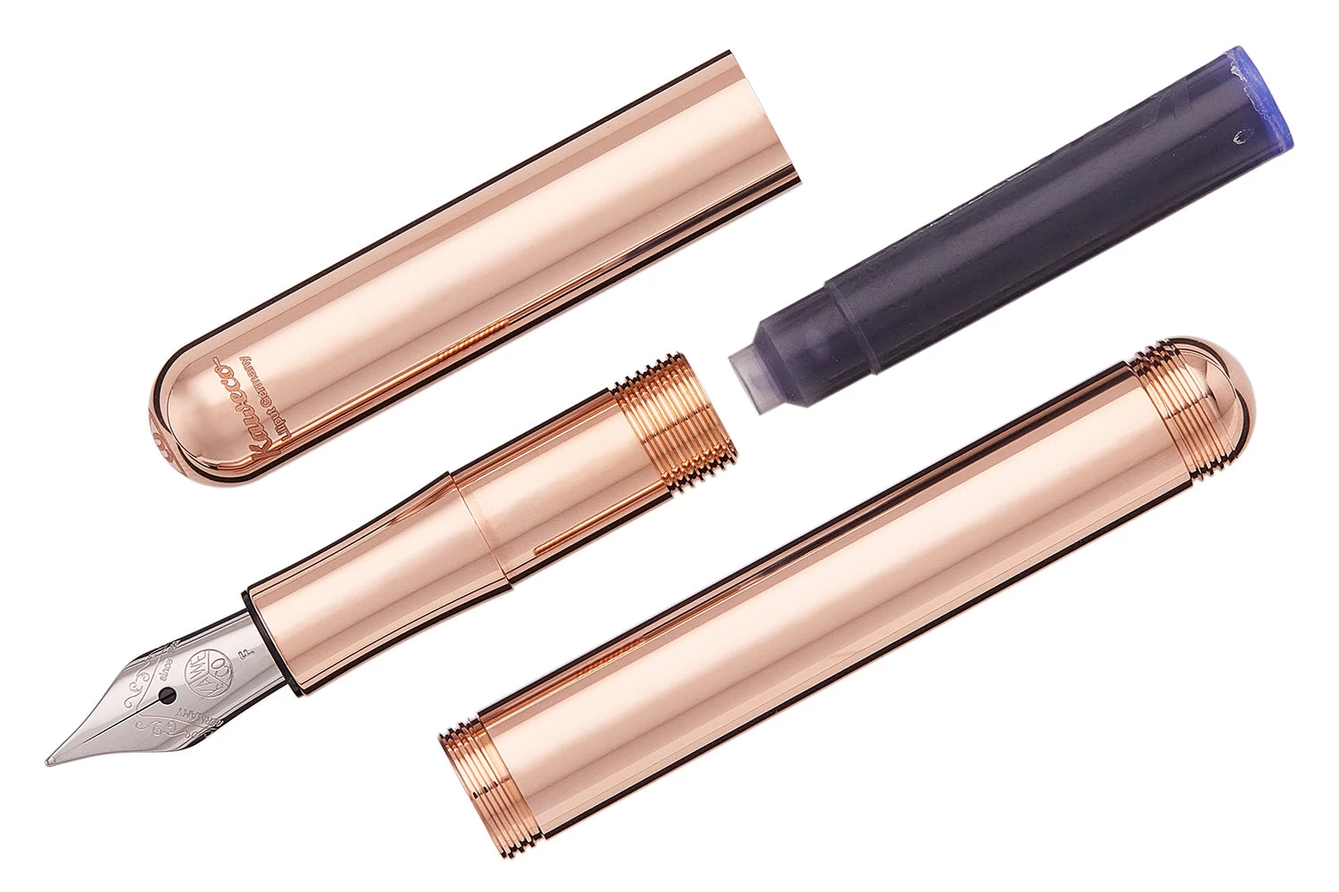 The Kaweco Liliput is a tiny fountain pen that when posted transforms into a full-sized pen that easily fits in your hand. This copper fountain pen has a light finish to help postpone the patina that will come with use. It comes with a stainless steel nib and an ink cartridge to get you started writing right away! The cap screws on to the back to post securely, and it accepts short standard international cartridges. Optional clip sold separately.