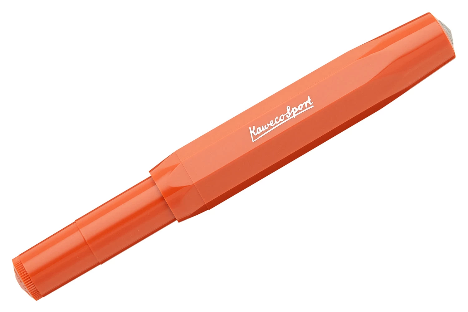 The Kaweco Skyline Sport is a pocket-sized fountain pen that when posted transforms into a full-sized pen that easily fits in your hand. This solid red-orange resin fountain pen comes with a stainless steel nib and an ink cartridge to get you started writing right away! It uses short standard international ink cartridges, or you can easily convert it to an eyedropper pen with a little bit of silicone grease. Converter and optional clip sold separately.