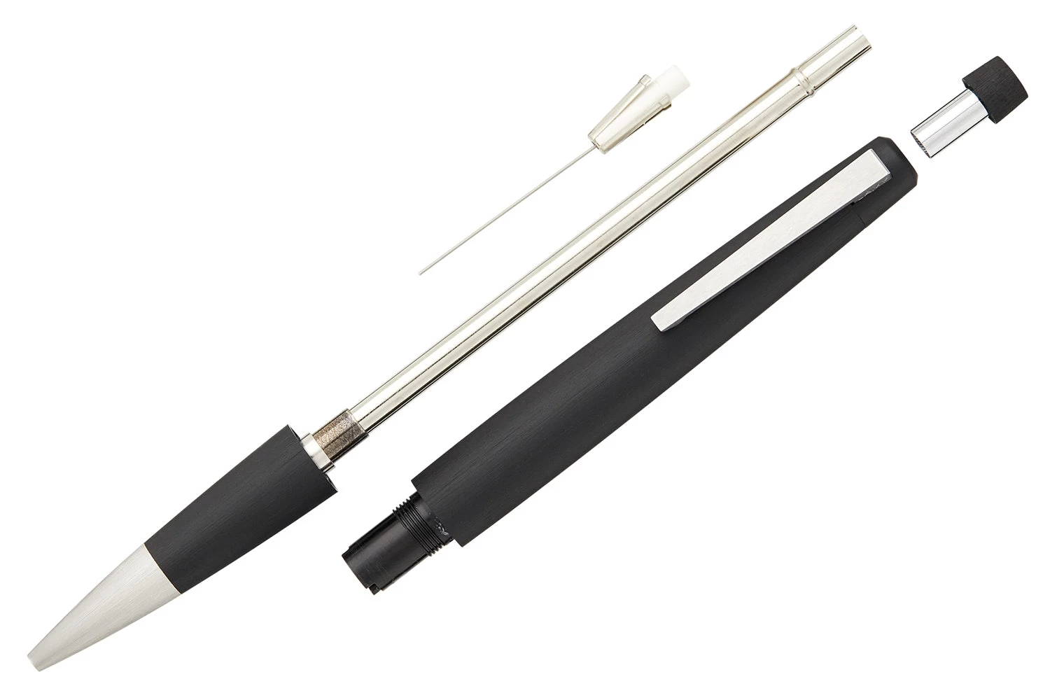 This LAMY 2000 click mechanical pencil is made of matte black polycarbonate with brushed stainless steel accents. Available in either 0.5mm or 0.7mm lead.