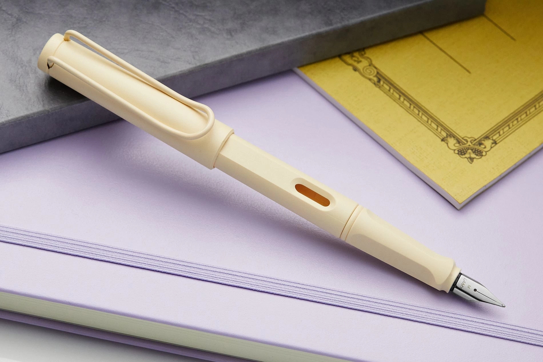 One of two special edition colors for 2022! This fountain pen features a matte cream barrel and cap, clip, finial, and accents.