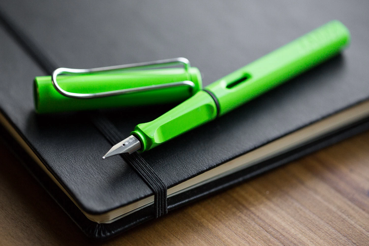 This apple green safari comes with an interchangeable silver steel nib, which can be easily swapped out for another size. This fountain pen comes with a blue LAMY ink cartridge so you can get started writing right away.