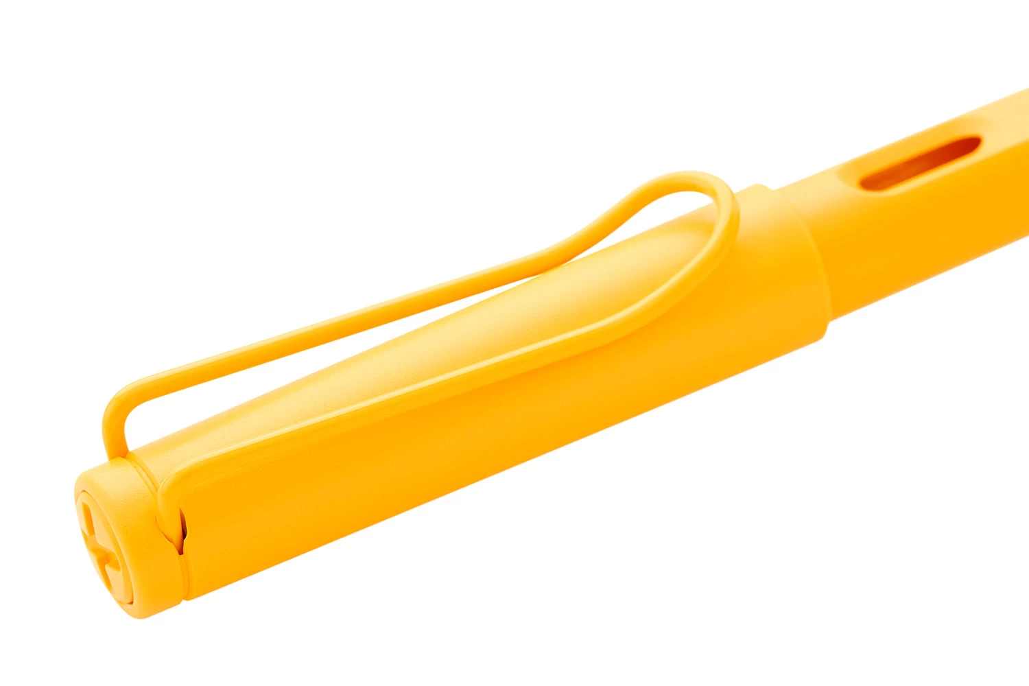 One of three special edition colors for 2020! Part of the LAMY safari candy collection, this fountain pen features a matte yellow barrel and cap, clip, finial, and accents.