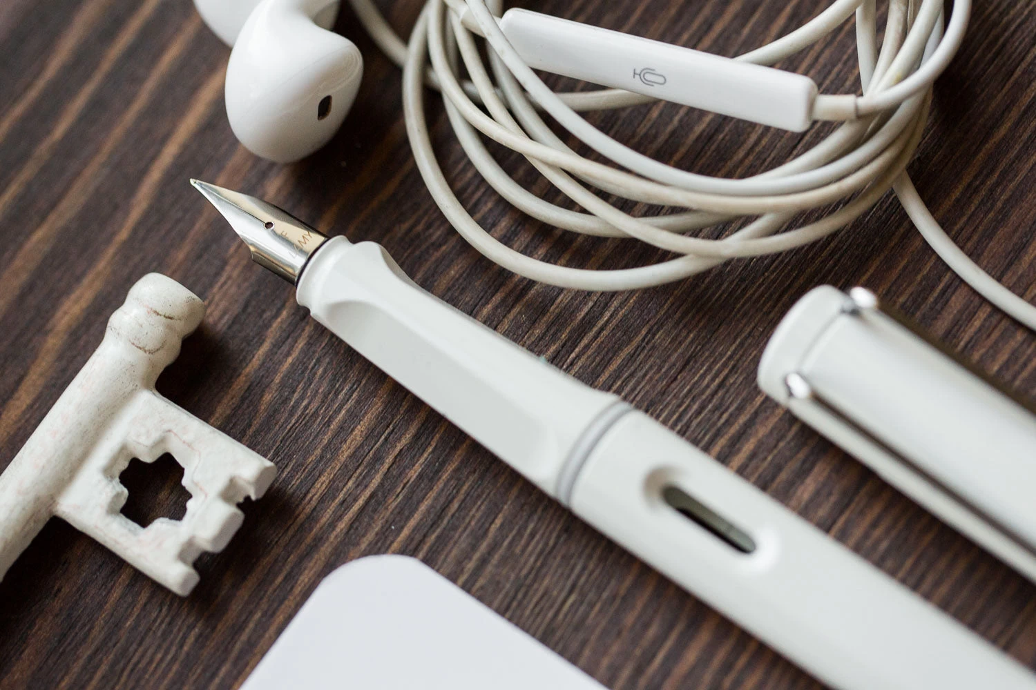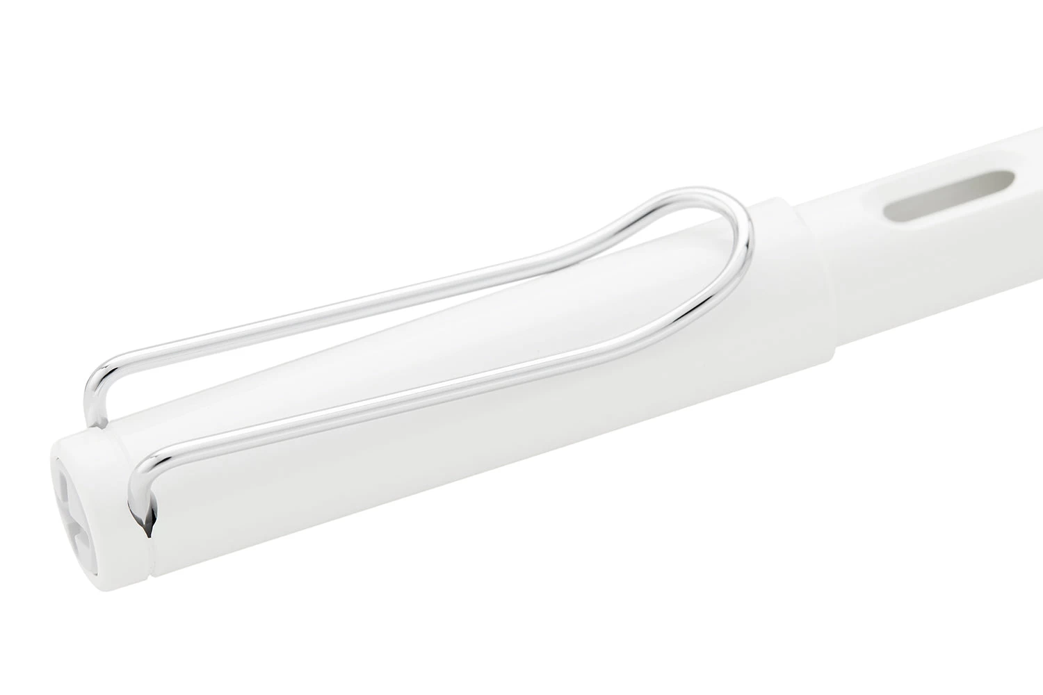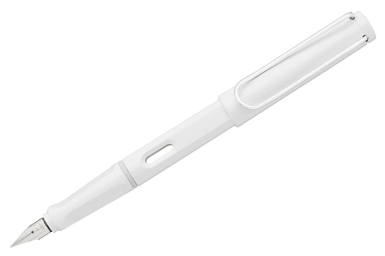 This white Safari comes with an interchangeable silver steel nib, which can be easily swapped out for another size. This fountain pen comes with a blue LAMY ink cartridge so you can get started writing right away.