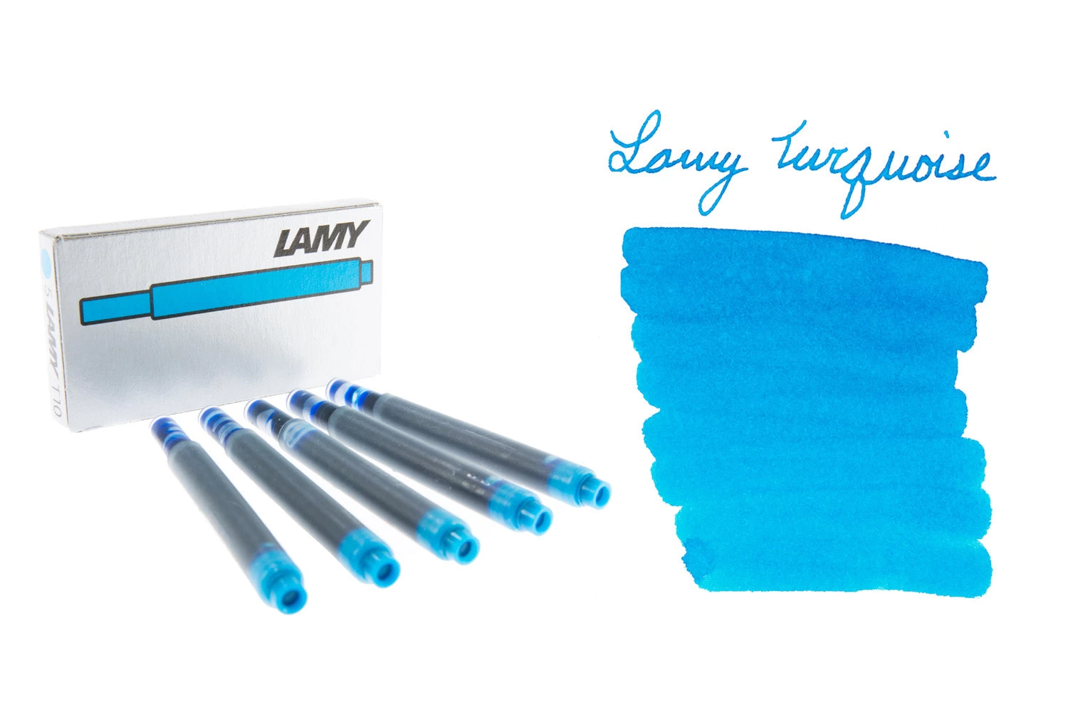 LAMY fountain pen ink cartridges will fit just about all LAMY cartridge/converter fountain pen models (everything except the 2000). This box includes 5 turquoise cartridges.