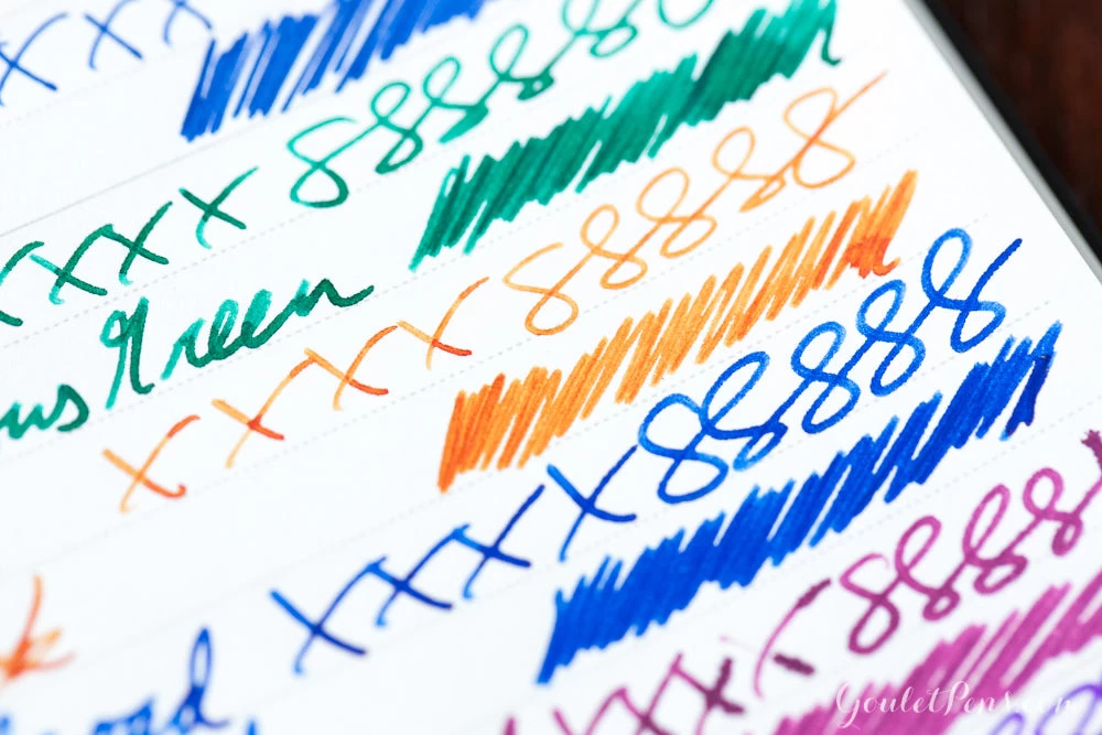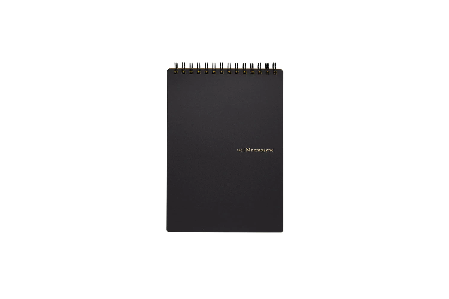 Made in Japan, this B6-sized notepad features 50 sheets of white acid-free 80gsm lined paper. The black double wire top spiral binding matches the black plastic cover. The notebook features 7mm line spacing with 21 rows per sheet (with a bold line every 7 rows), and every page is micro-perforated. Each sheet contains a blank margin at the top with a space for the date and title.