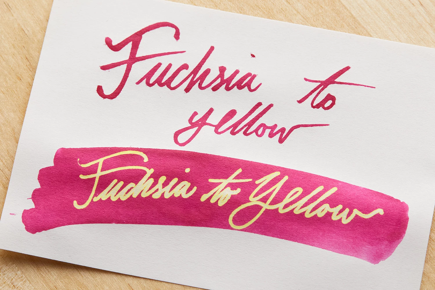 Note – this ink is a solid fuchsia pink color. In order to get the color-changing effect to yellow, you will need to apply the Ink Color Changer (sold separately). Some of the color-changing inks may fade over time.