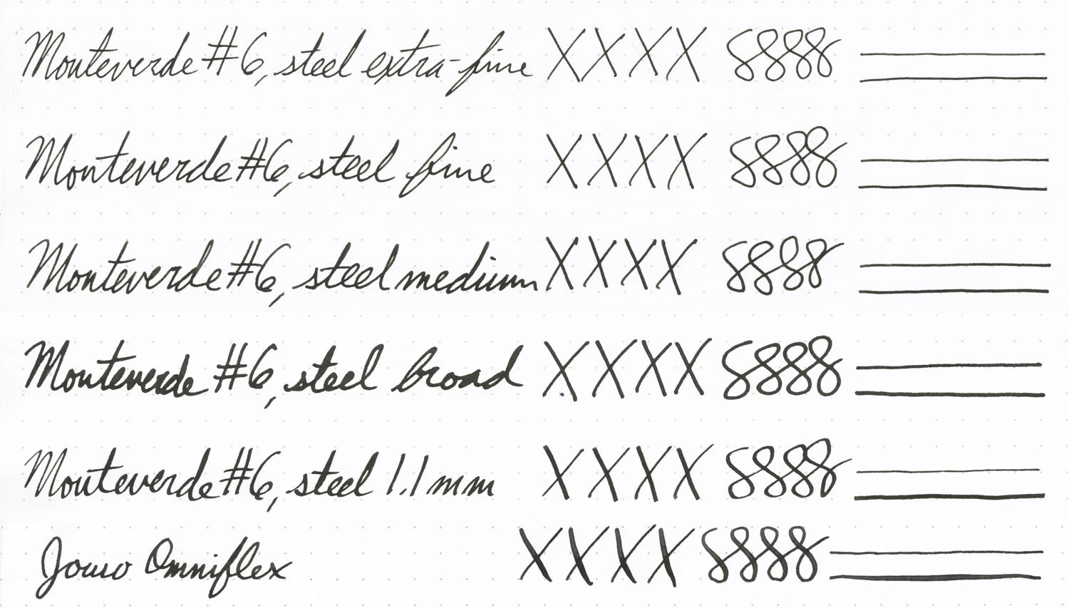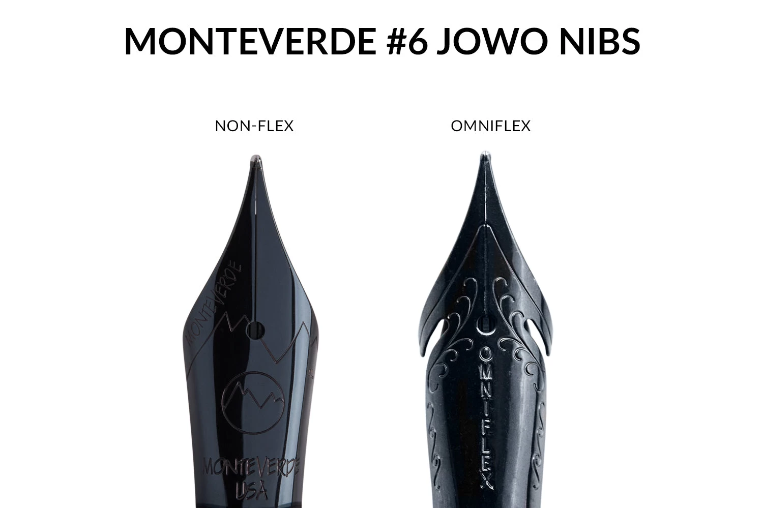 Our note about the JoWo Omniflex nib: This flex nib will allow you to experience more bounce and softness than writing with conventional nibs. You can achieve some line variation with a little additional downward pressure, to a point. We recommend flexing the nib to about twice the line width that you would see without using any pressure. Please take care to avoid pressing too hard on the nib, as over-flexing could prevent the tines from returning fully to their original position and decrease or stop your ink flow.