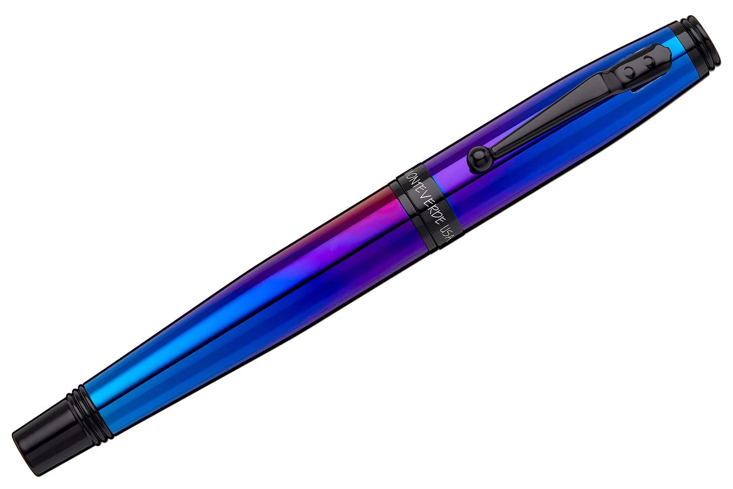 Designed after the astronomical light-shows that our galaxy displays, the Invincia Nebula features a distinct multi-colored plating finish, displaying a blend of metallic blues, purples, and reds. The sophistication of the trim, clip and nib in stark black contrasted with that of the barrel and cap, the Nebula is the most alluring Invincia yet.