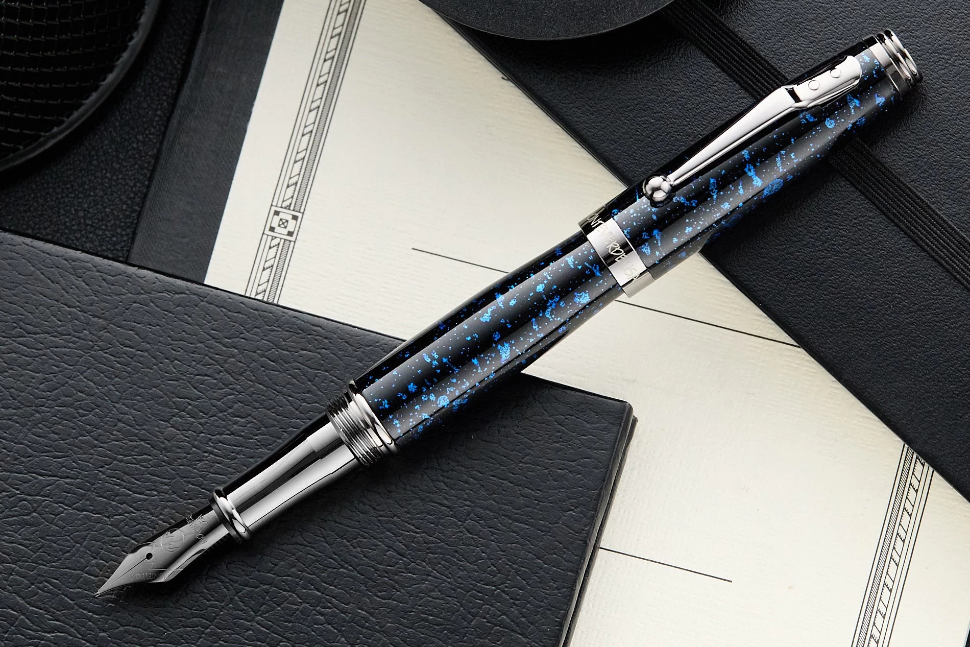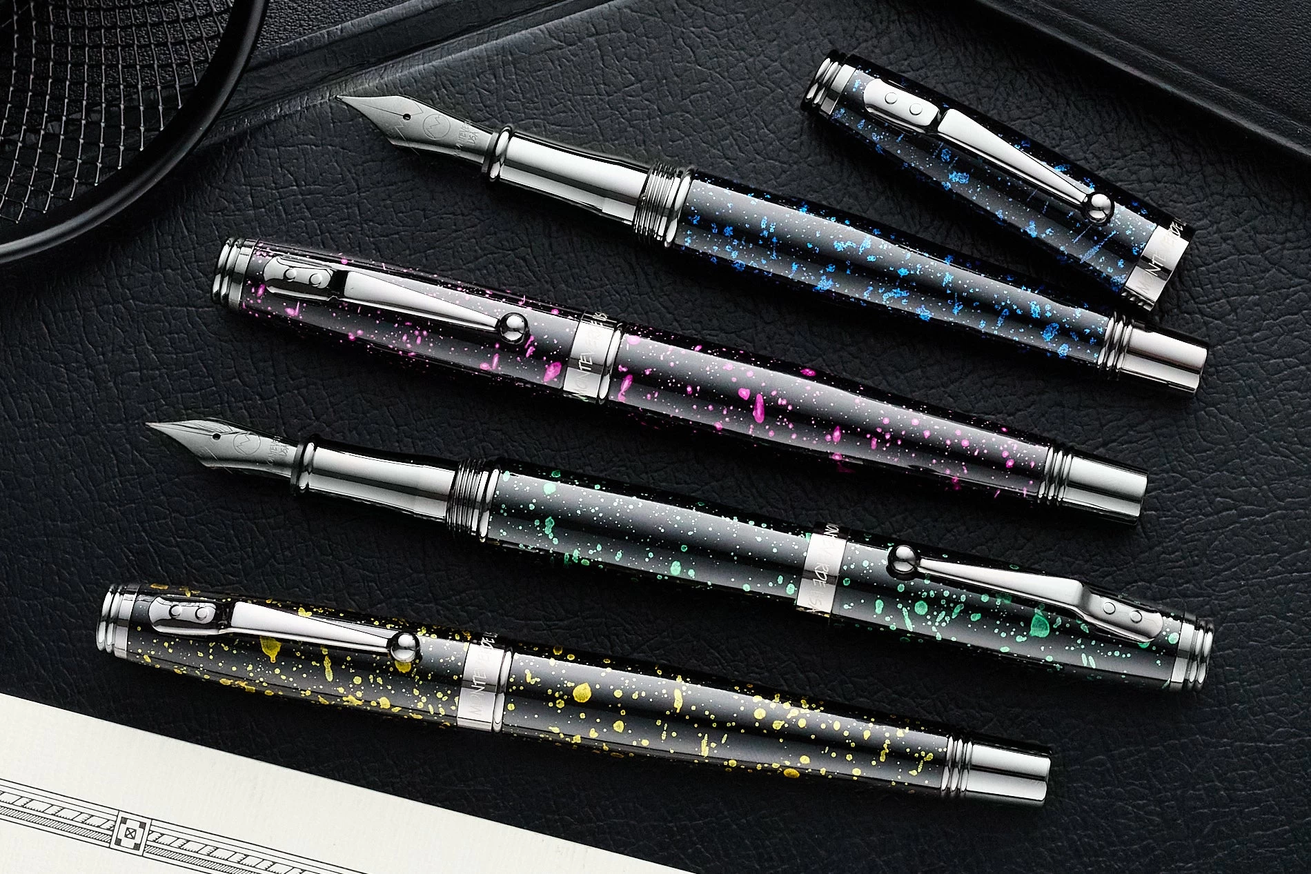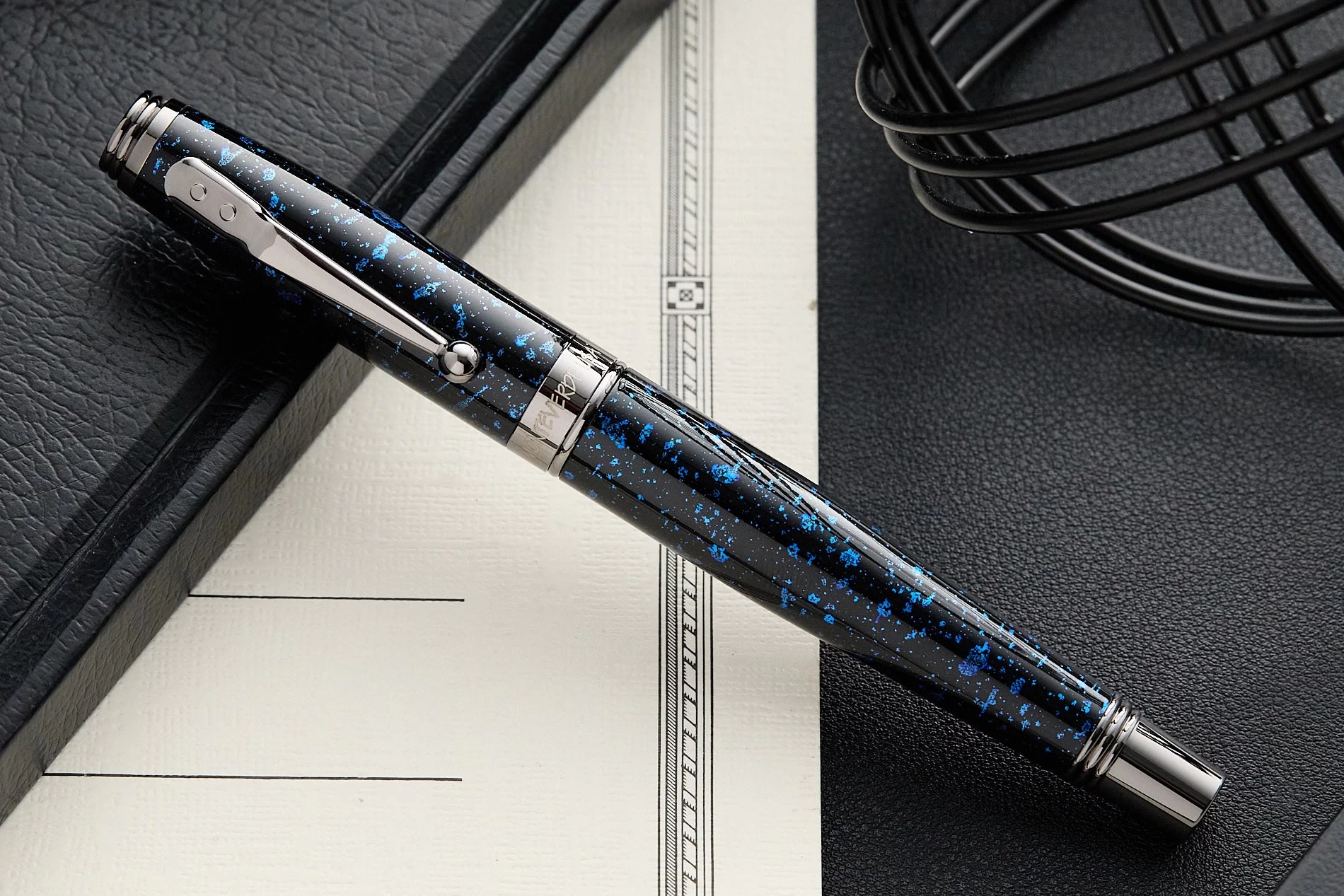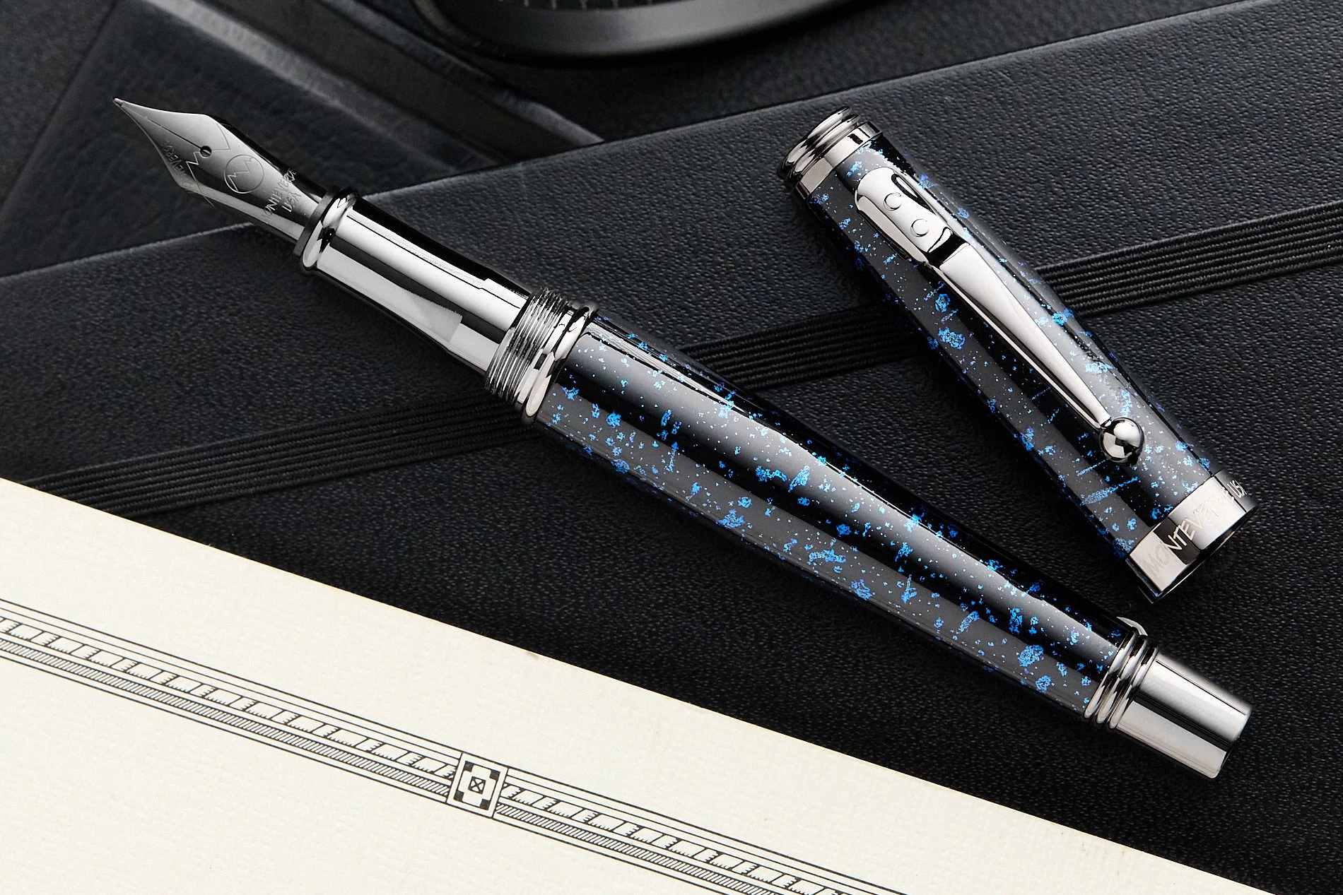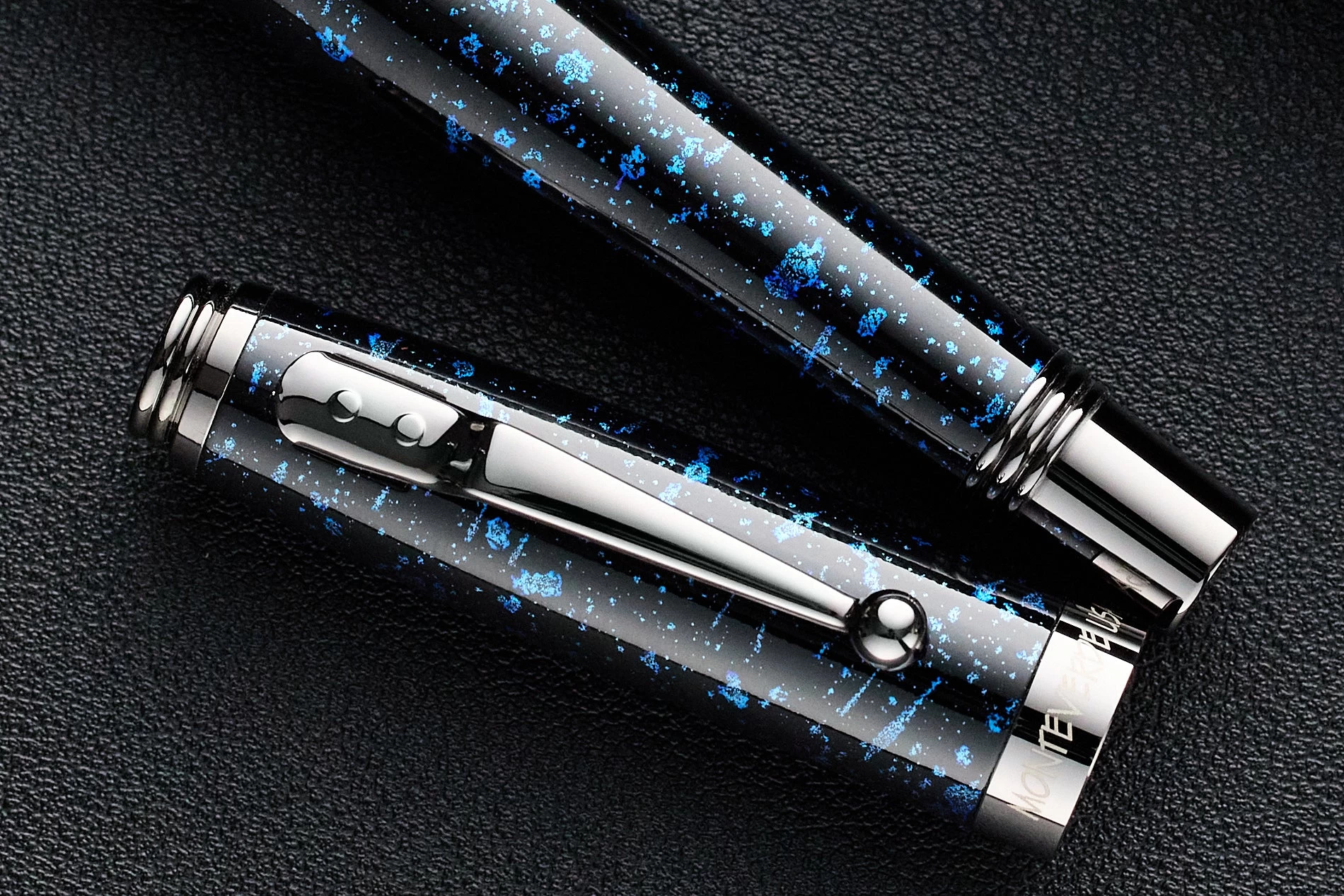 The Vega Collection brings a splash of color to Montverde’s flagship Invincia collection. The solid brass barrels and heavy lacquer coating with blue splatter are accented with gun metal trim, making each pen fun and functional.
