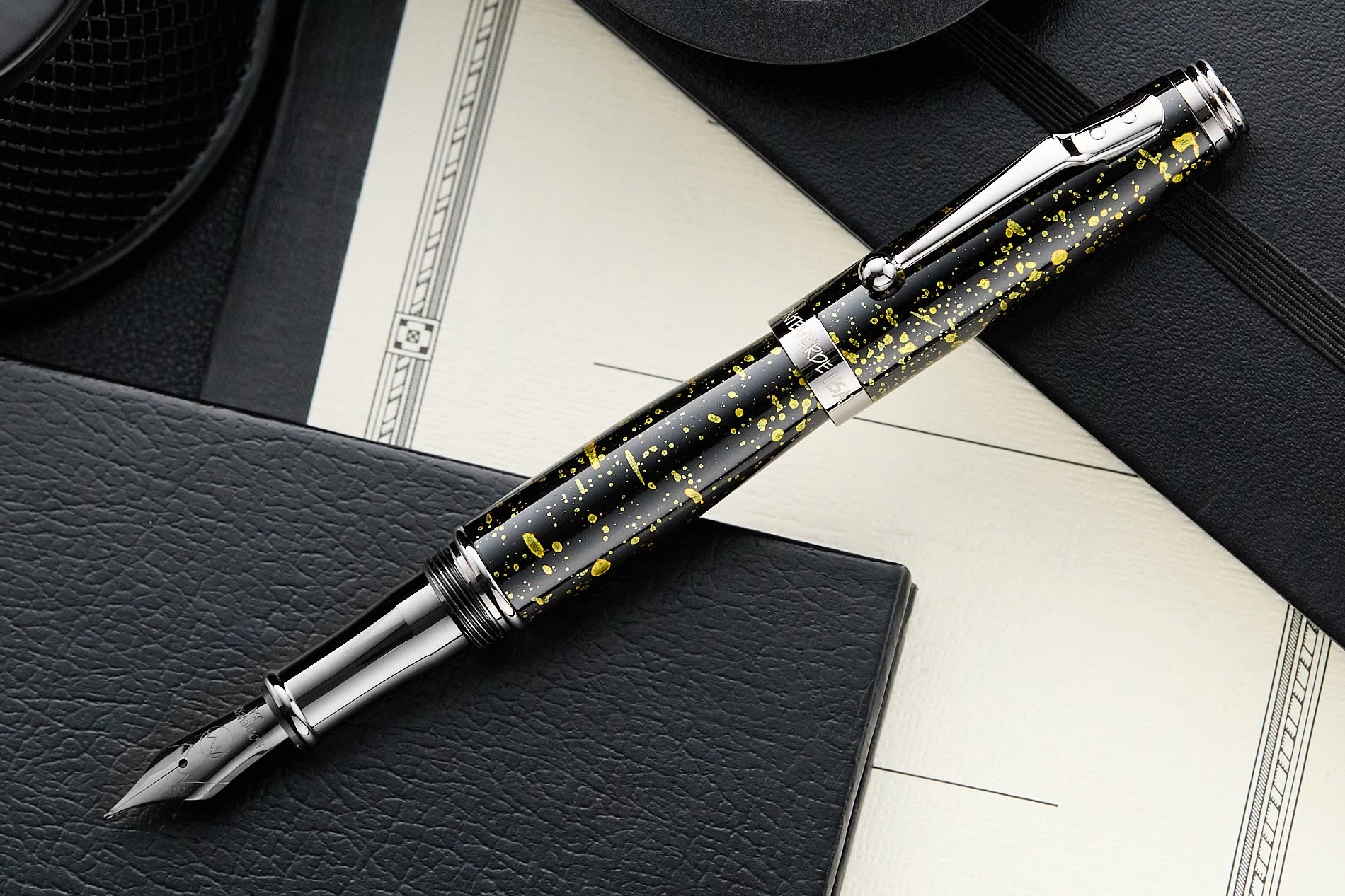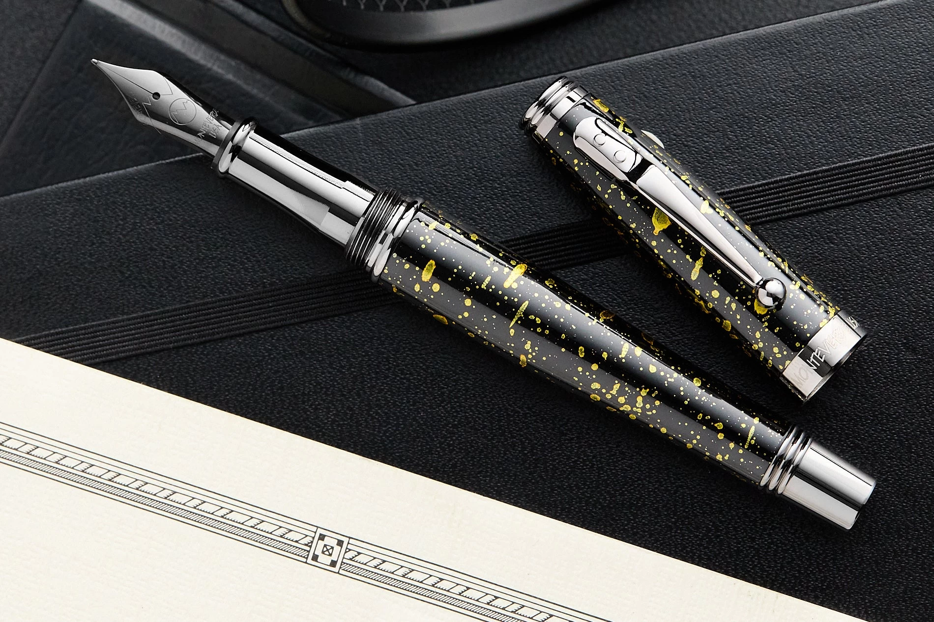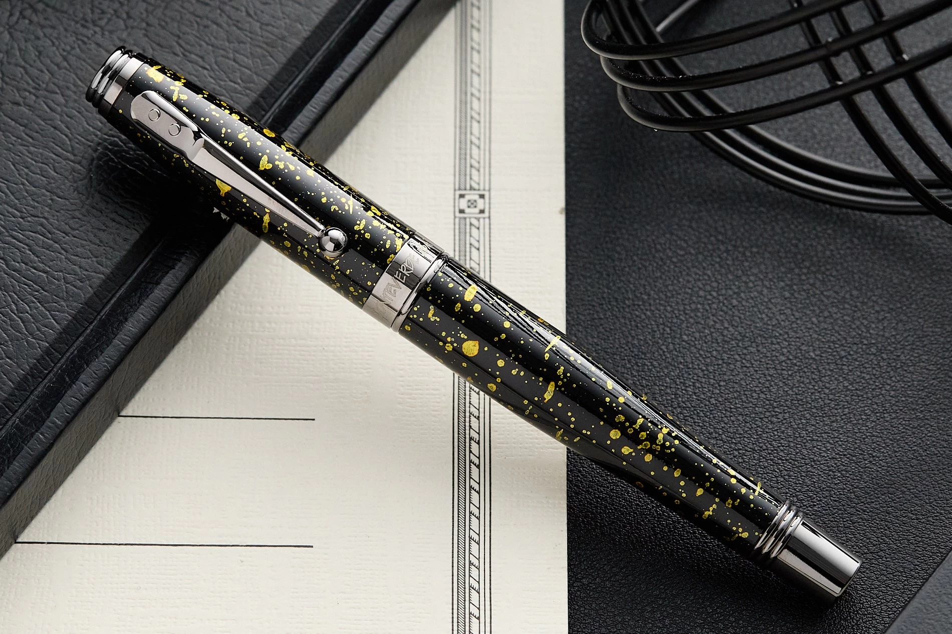 The Vega Collection brings a splash of color to Montverde’s flagship Invincia collection. The solid brass barrels and heavy lacquer coating with yellow splatter are accented with gun metal trim, making each pen fun and functional.