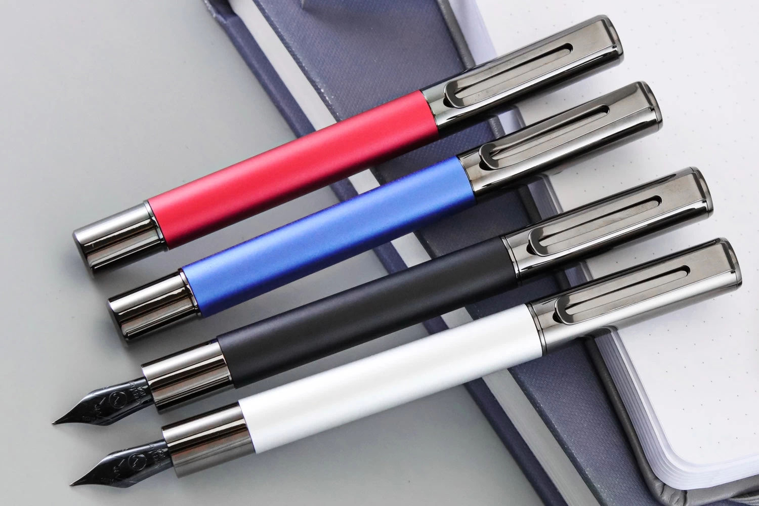 Each aluminum barrel is anodized in a metallic color and treated with a matte finish, resulting in a muted pop of vibrant colors that are soft to the touch and beautifully accentuated with polished gunmetal accents. The clip is designed to match the straight lines of the body style with an extra flair, the center cut in an elongated oval shape for ease of use.