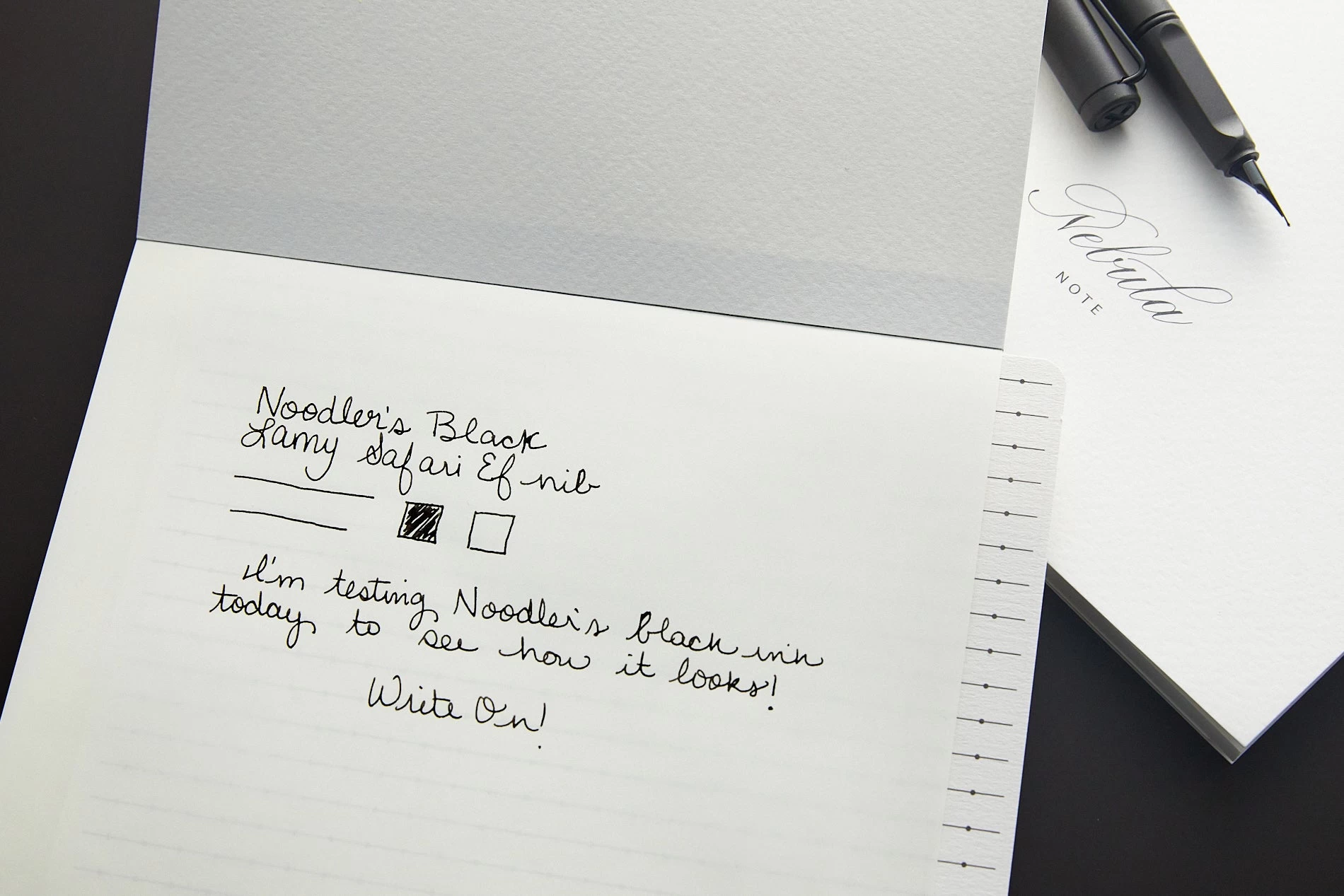 This tablet features 100 sheets of white 52gsm fountain pen friendly blank Tomoe River paper and measures 182mm wide by 257mm tall.