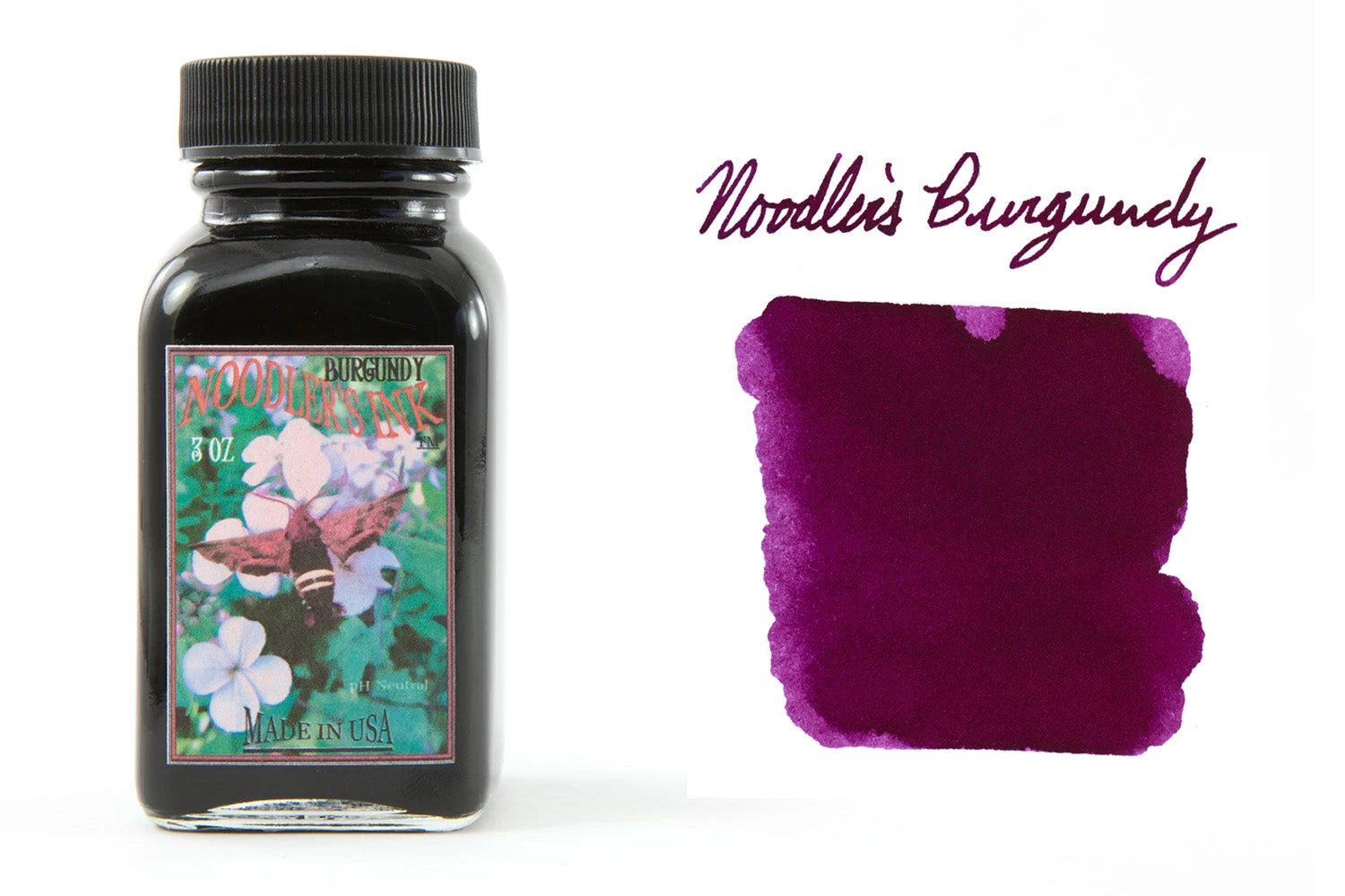 3oz (90ml) glass bottle of Noodler’s Burgundy fountain pen ink. Noodler’s inks are handcrafted, so there may be slight color variations from batch to batch.