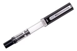 The Noodler’s Konrad flex pen is smaller than the Ahab, but larger than the Nib Creaper. This white and black fountain pen features a steel flexible nib and a twist piston mechanism with a blind cap. The Konrad is made of a celluloid derivative and is technically biodegradable and formed from a “renewable resource”. The vegetal resin body of this pen may show particles or striations within the material. This is most noticeable in demonstrators and bright colors.