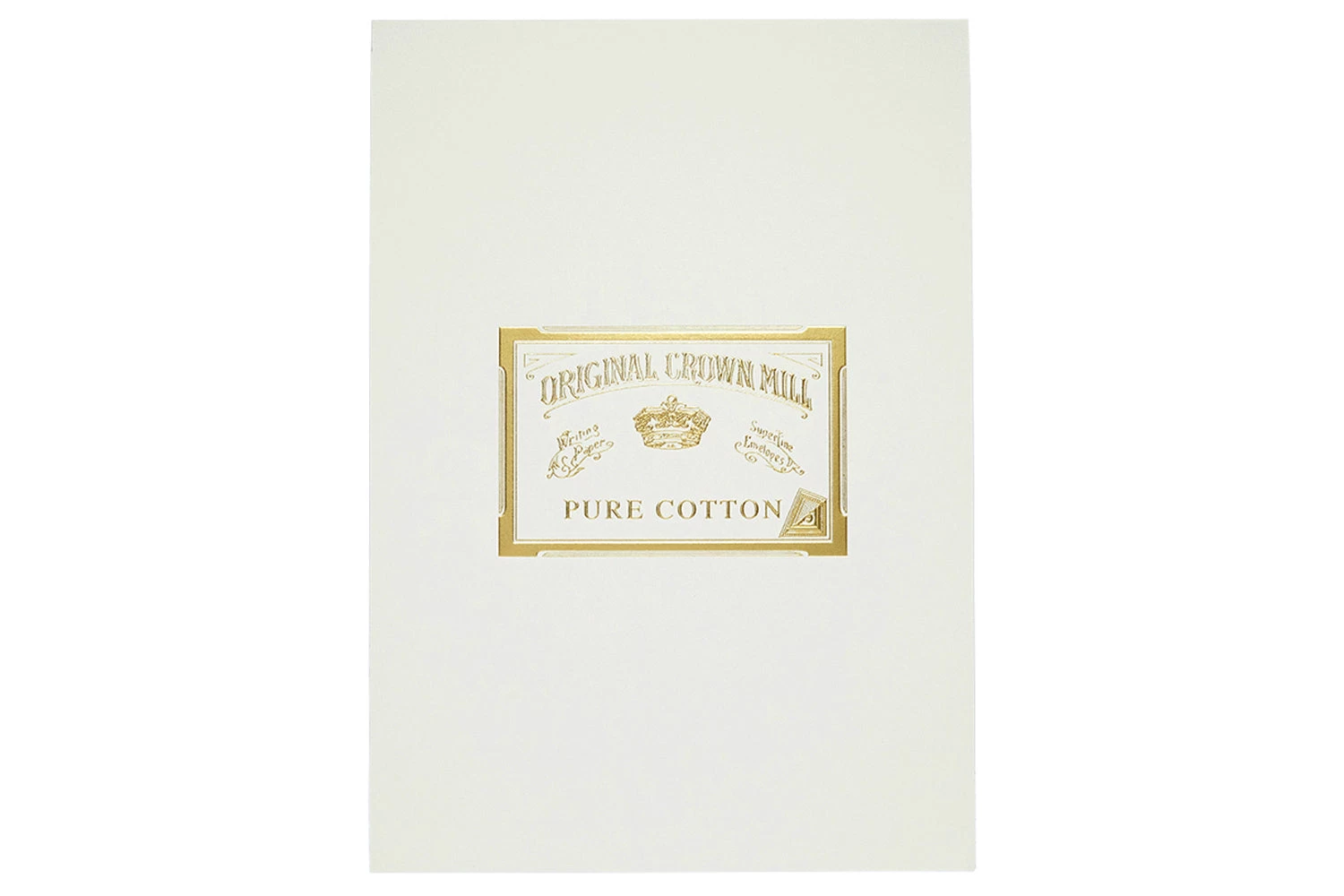 A practical pad of Original Crown Mill 100g, 100% cotton, natural white, woven writing sheets. This A4 sheet size is just right for writing long letters, taking notes, or drawing. This tablet includes 50 removable sheets. Matching Pure Cotton envelopes are available separately in packages of 25. Made in Belgium.