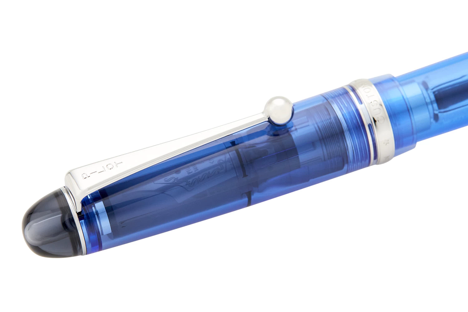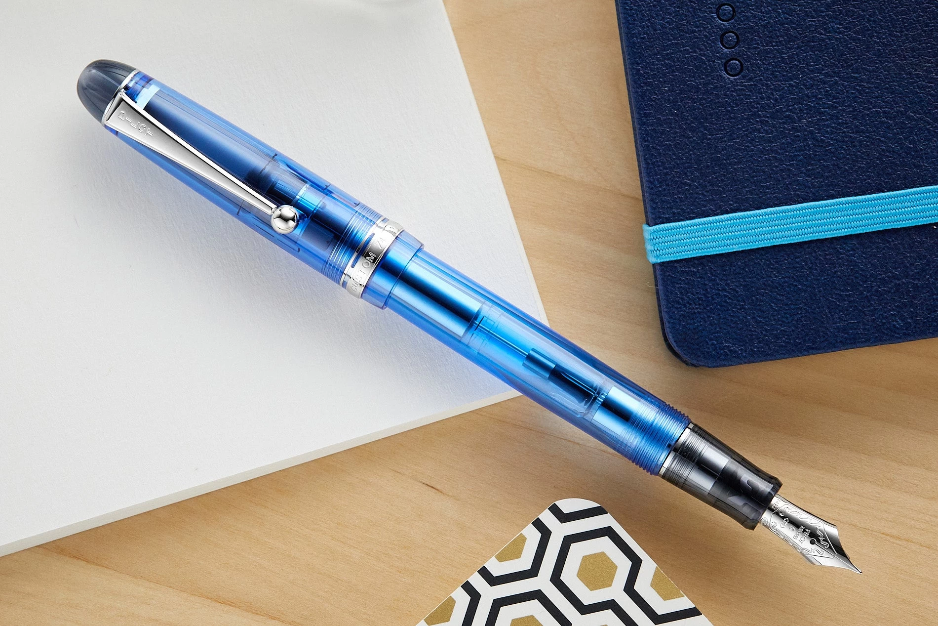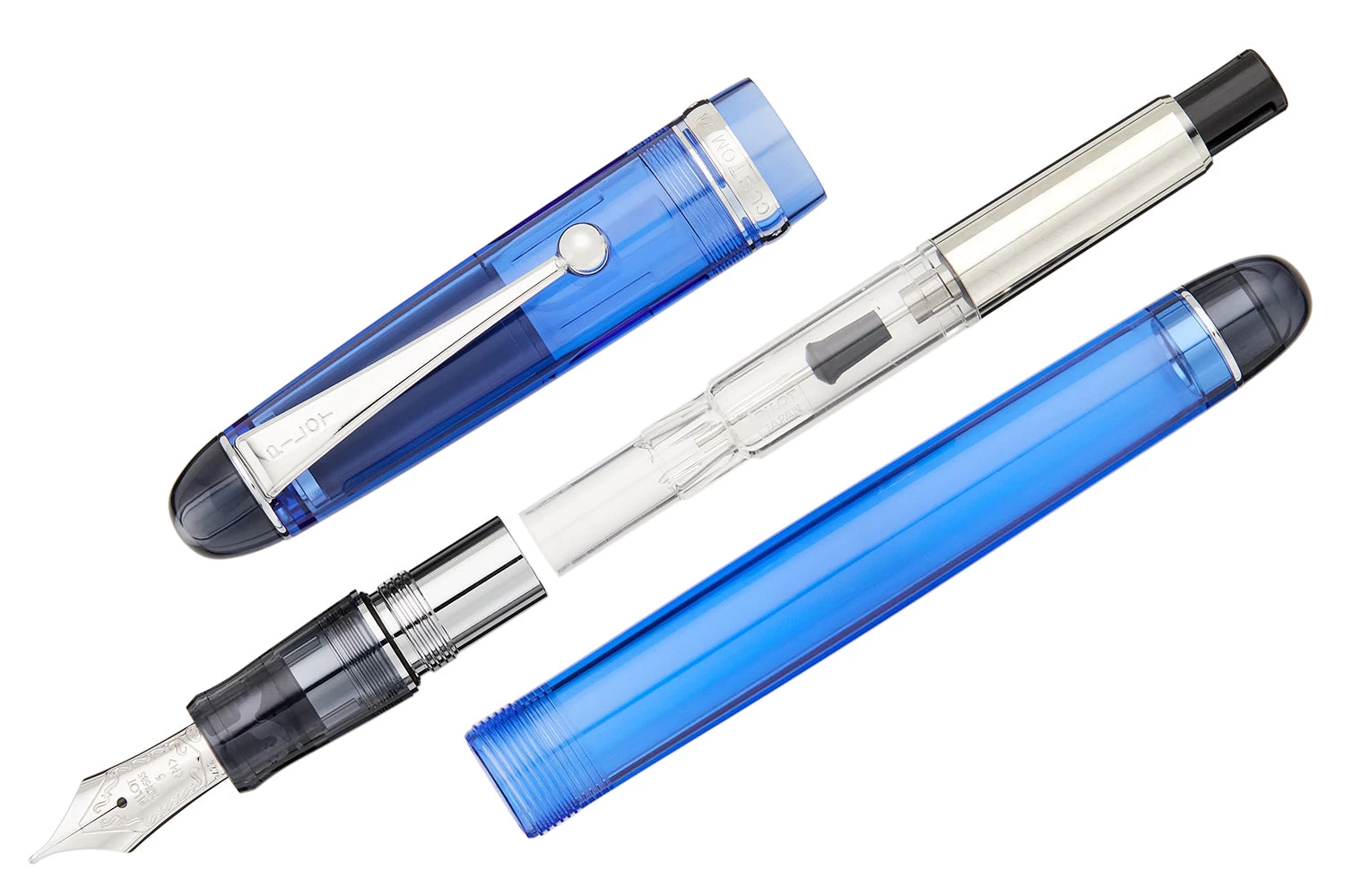 The Pilot Custom 74 is a simple yet sophisticated fountain pen. The minimalistic design with a transparent blue cap and barrel makes it a must-have for any pen enthusiast.