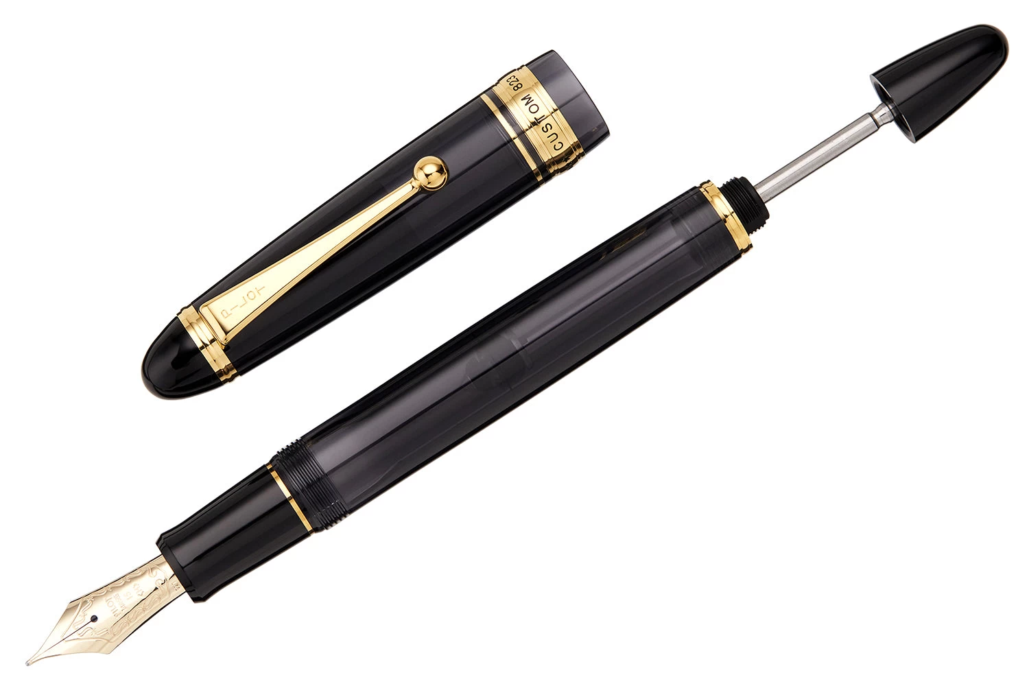 A unique alternative to the everyday fountain pen, the Pilot Custom 823 is in a league of its own. The translucent smoky grey cap and barrel, visible ink supply, and unique writing system make refilling effortless. This fountain pen features a 14k gold nib, matching gold trim, and a vacuum filling system. A simple, yet elegant design, the Custom 823 is great for everyday writing.