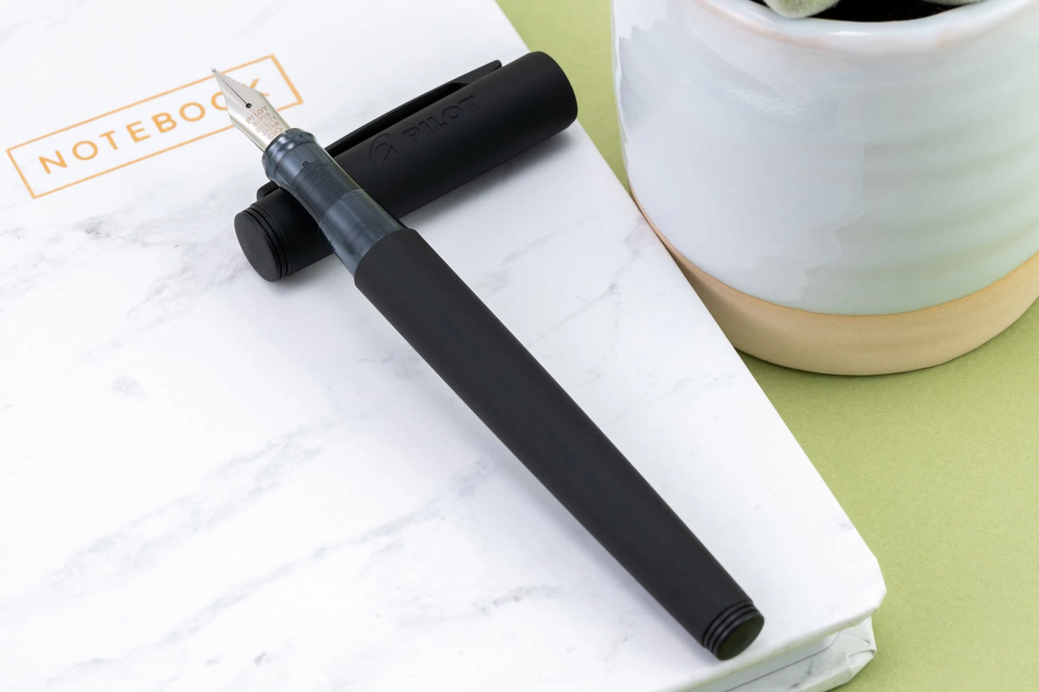 Introducing the Explorer, the newest value fountain pen from Pilot. This black resin pen has a matte finish and is complemented by black trim. It has a snap cap, a stainless steel nib, and comes with a Pilot ink cartridge as well as a CON-B squeeze converter for use with bottled ink. It comes packaged in a gift box.